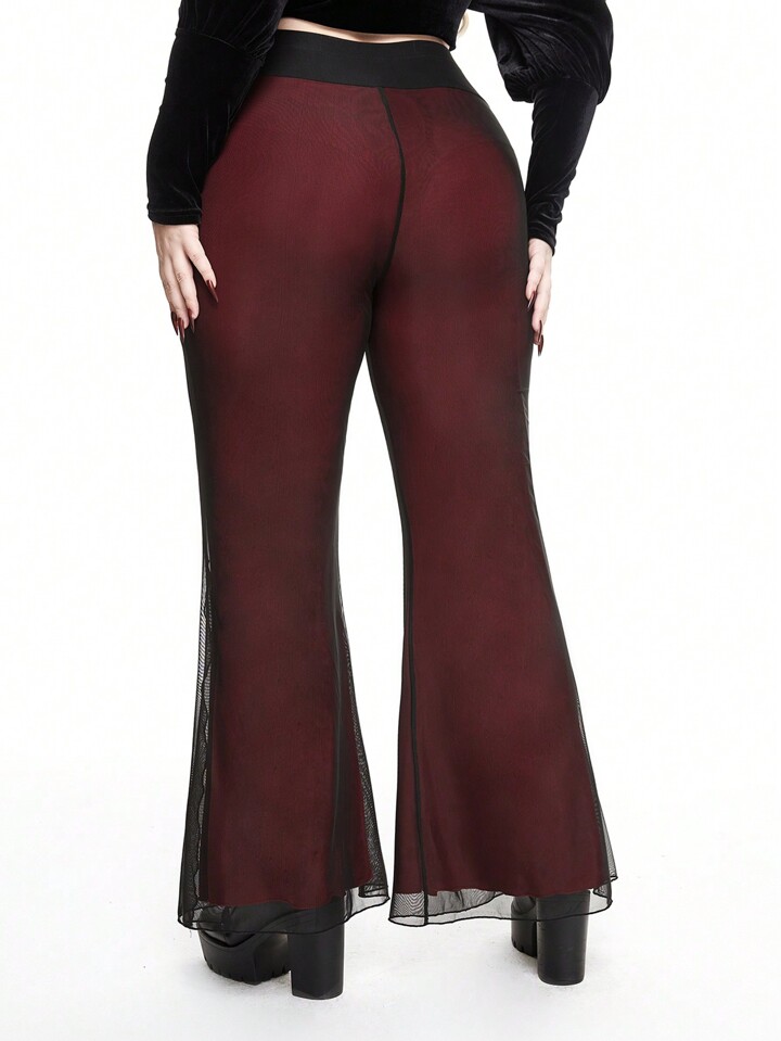 Goth Plus Size Contrast Color V-Waist Side Slit Mesh Flared Pants