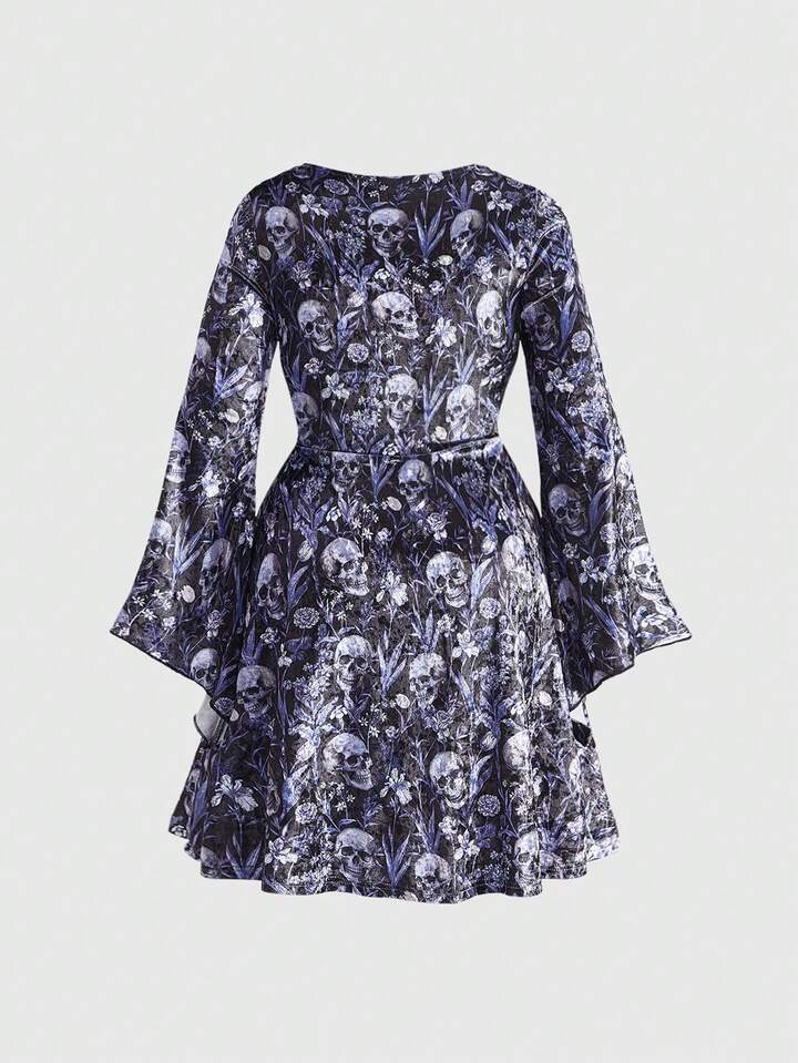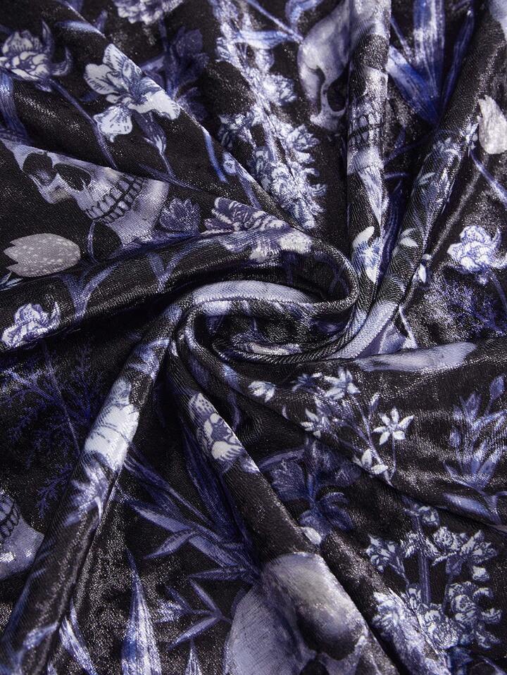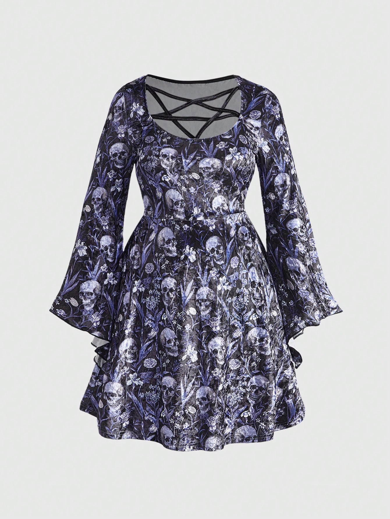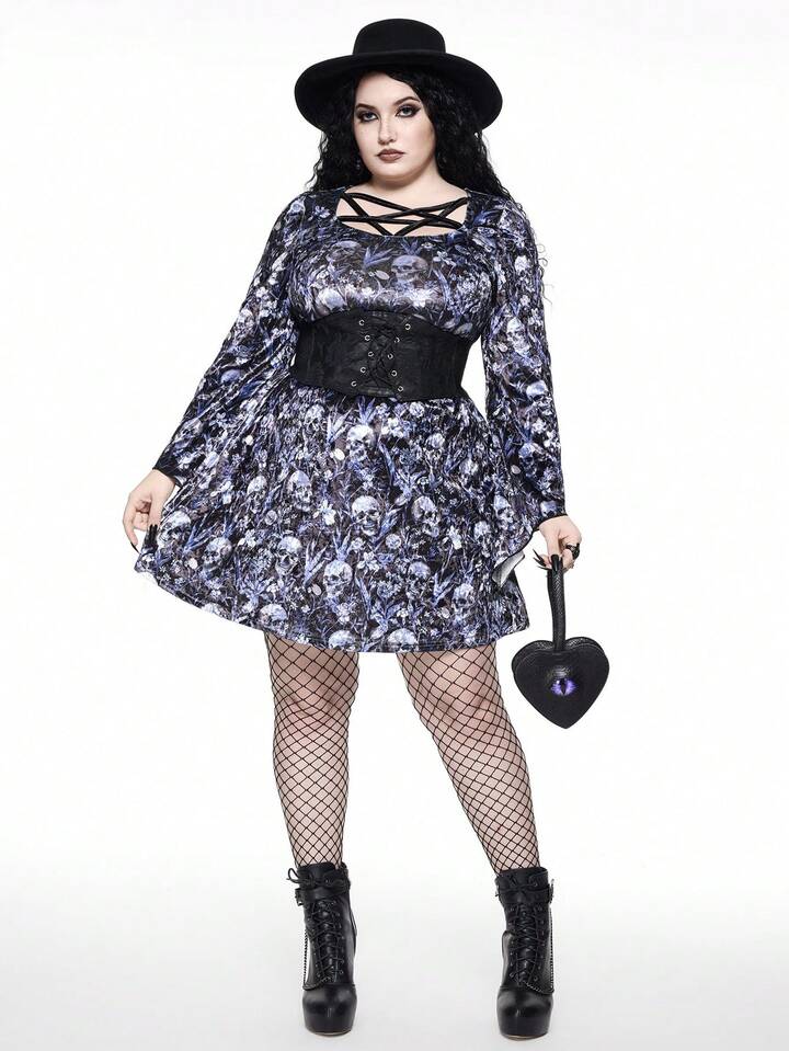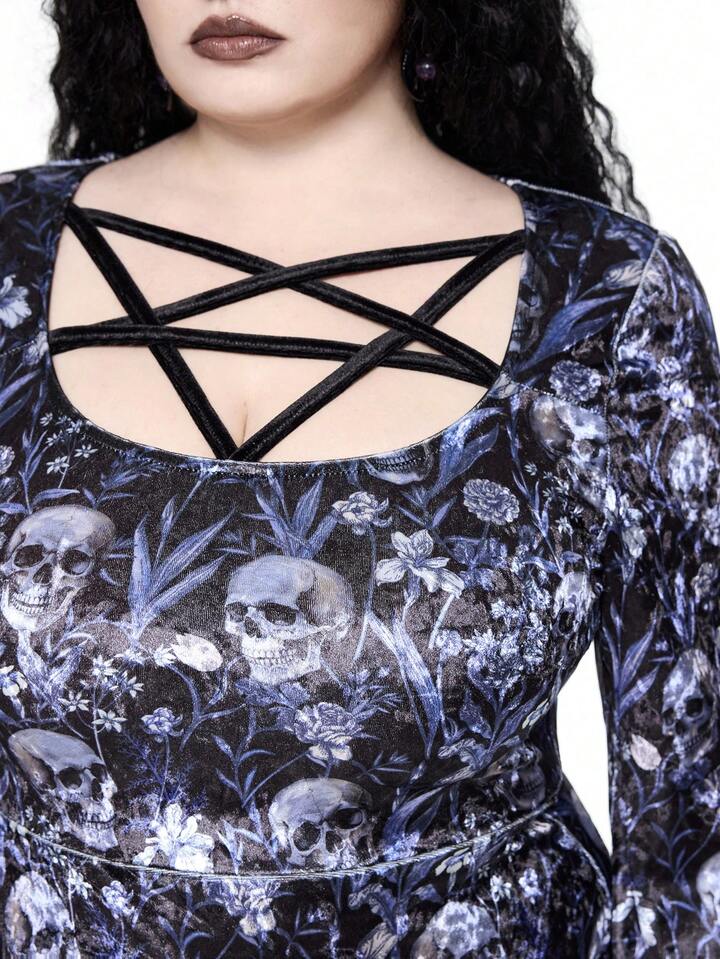 Goth Plus Size Pentagram Hollow Neck Design Cinched Waist Velvet Dress For Women