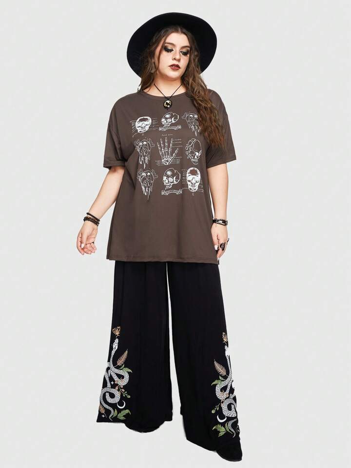 Goth Plus Size Women's Casual Skull Printed T-shirt