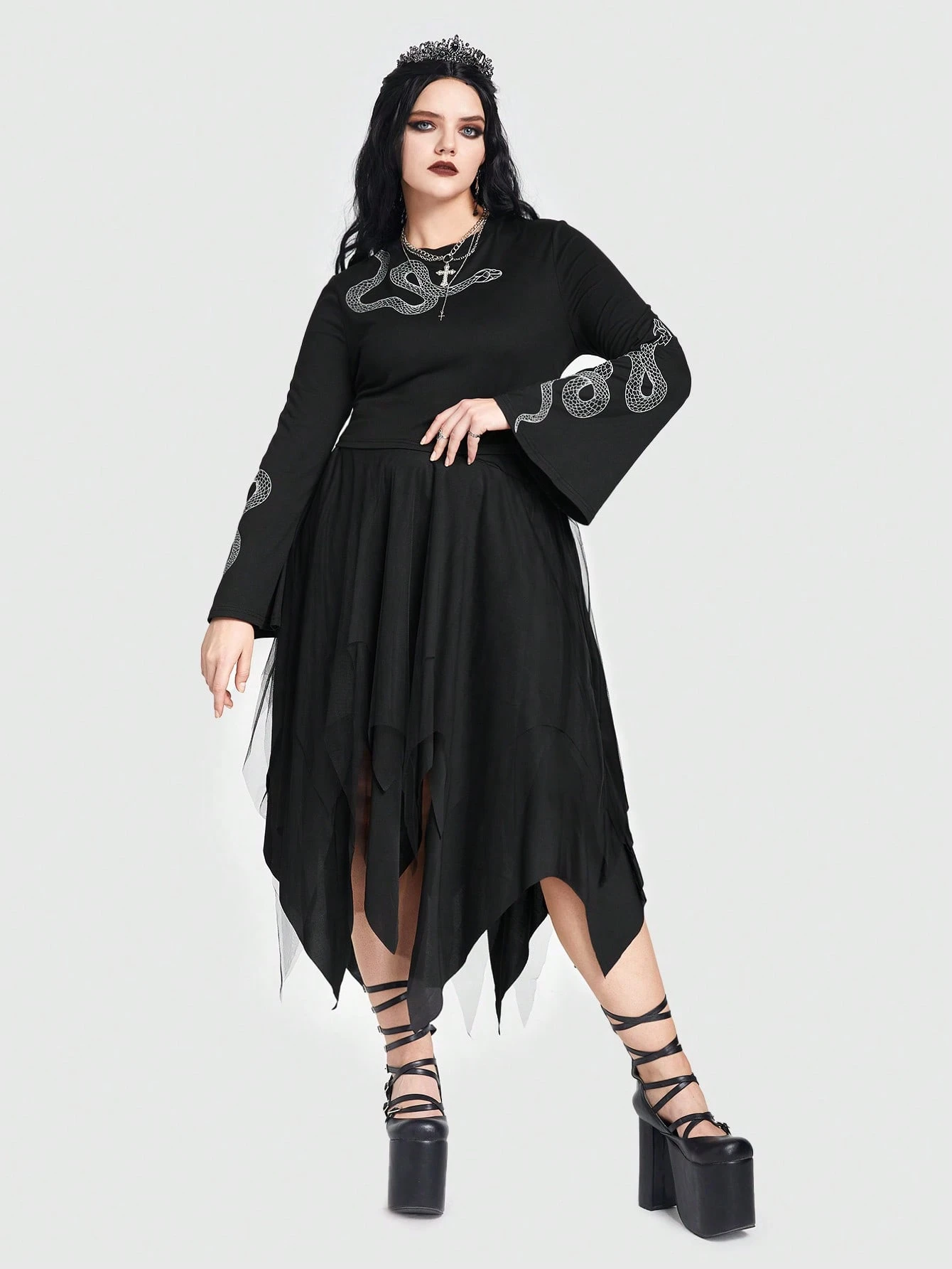 Goth Plus Snake Pattern Trumpet Sleeve Tee