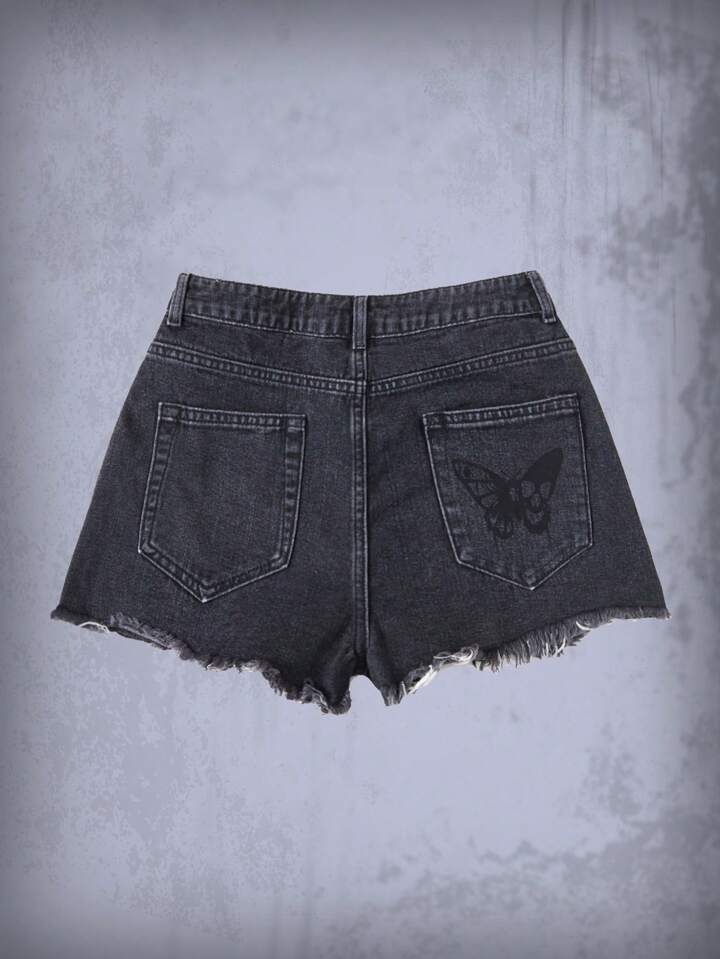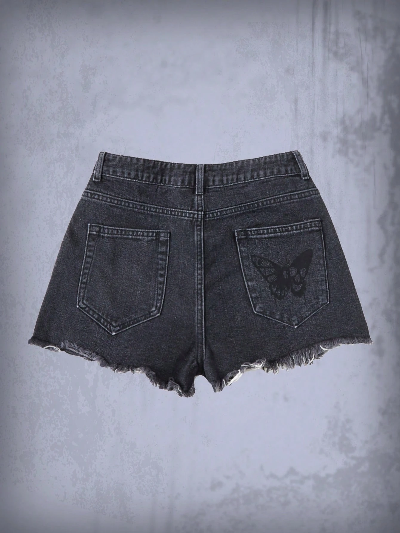 Goth Ripped Raw Hem Denim Shorts Low Rise Shorts