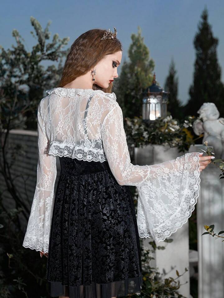 Goth Ruffle Trim Lace Flounce Sleeve Top