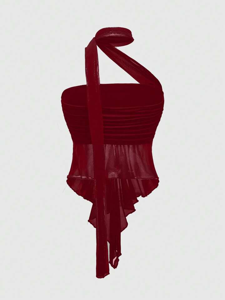 Goth Sexy Contrast Mesh Scarf Top, Plus Size Crop Top