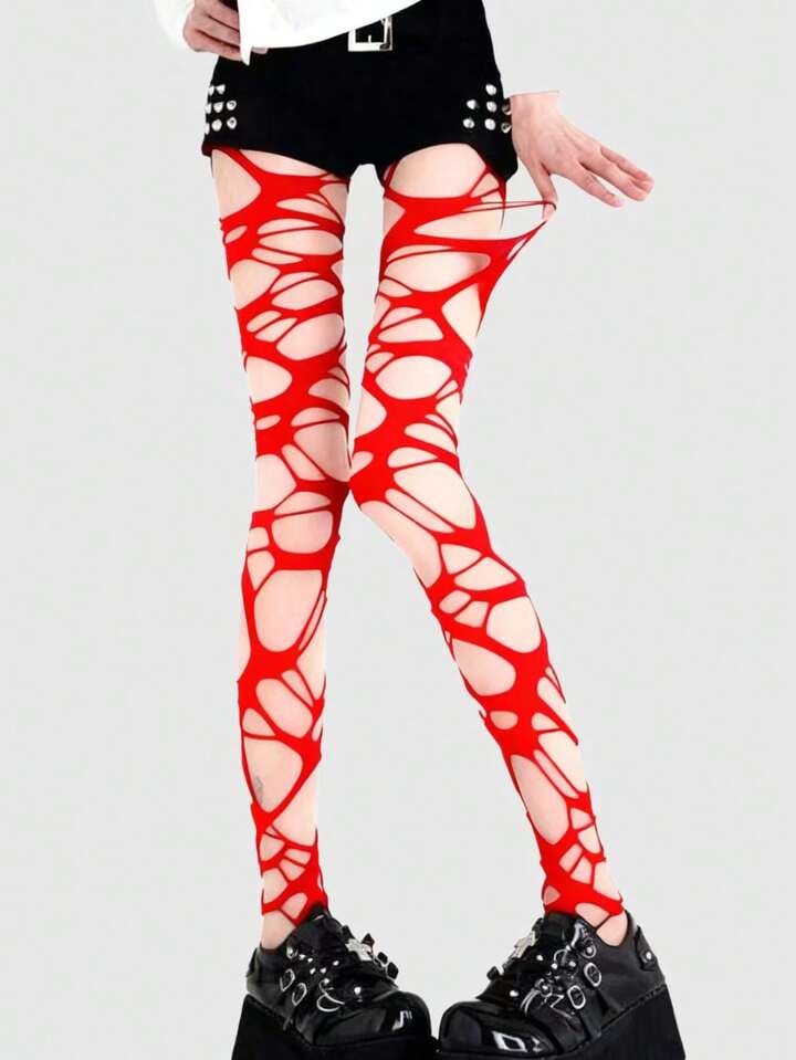Goth Sexy Lady Ripped Fishnet Black Tights