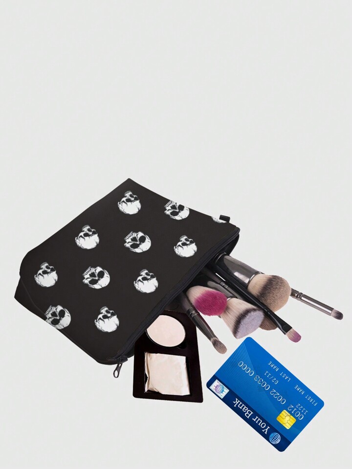 Goth Skull Pattern Zipper Makeup Bag