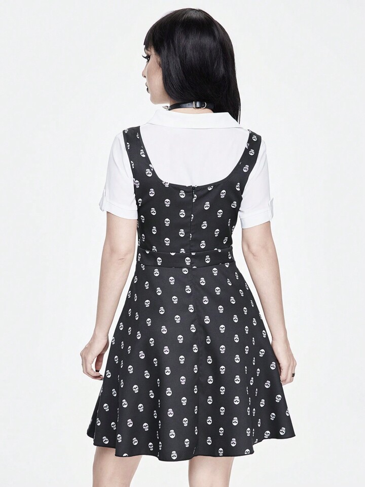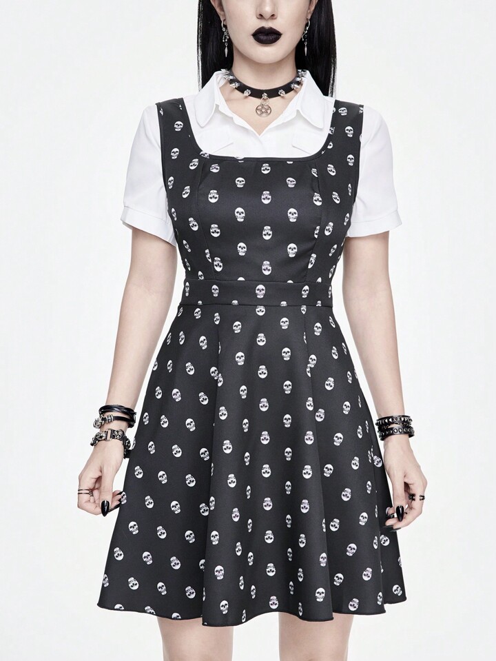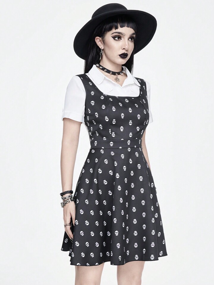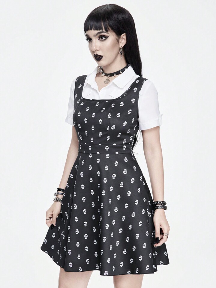 Goth Skull Print Overall Women's Dress