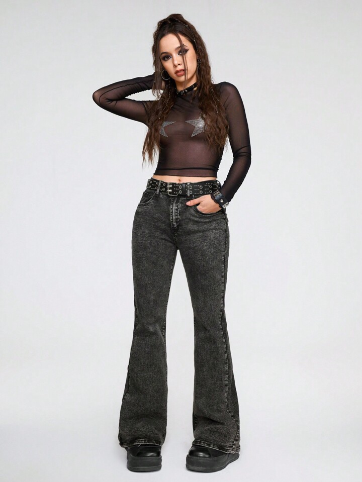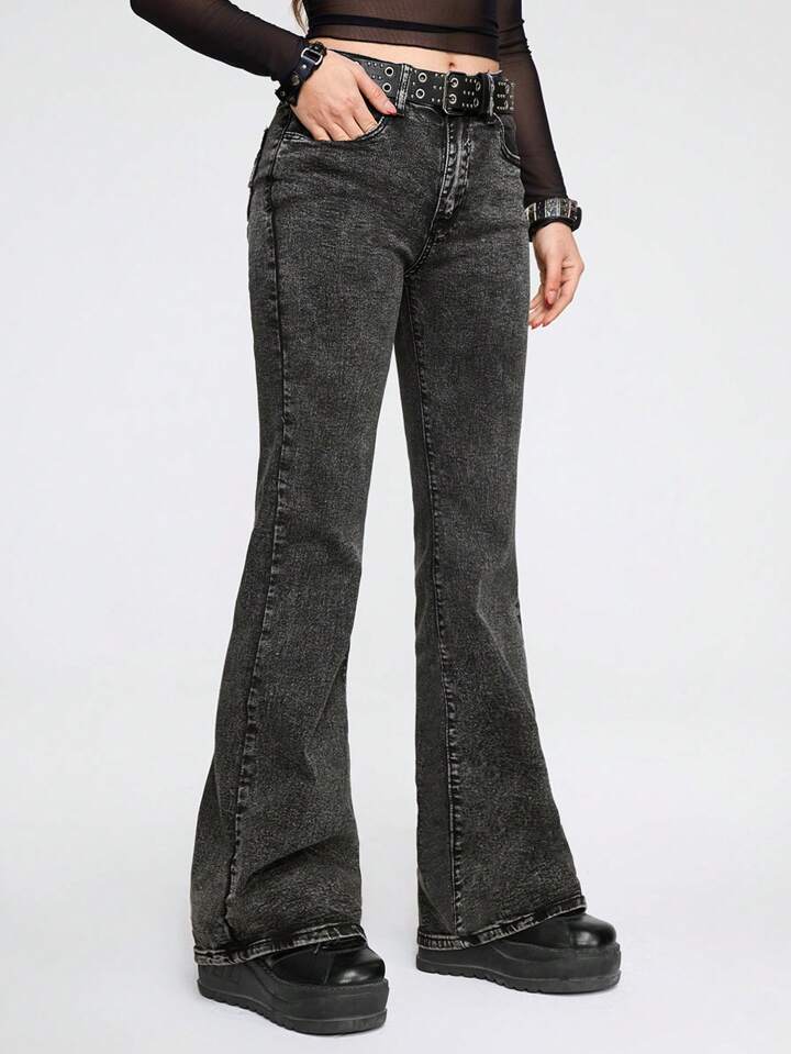 Goth Slant Pocket Flare Leg Jeans