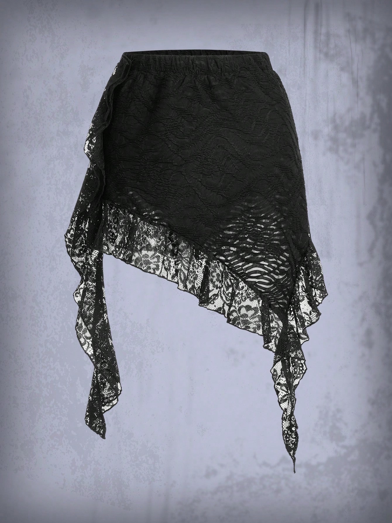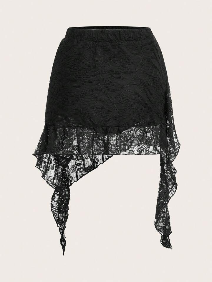 Goth Solid Asymmetrical Hem Lace Skirt