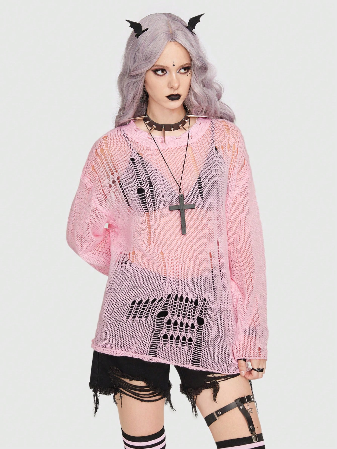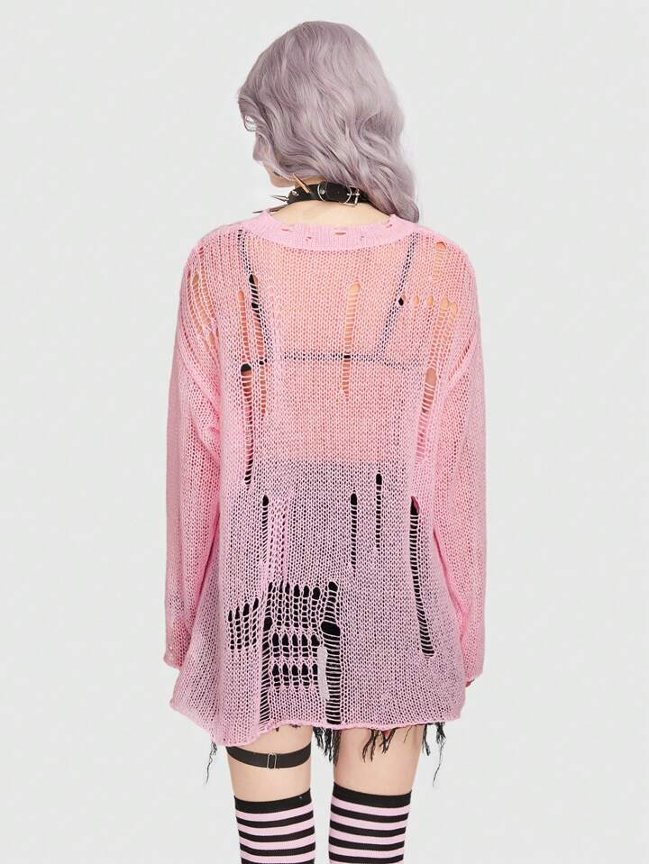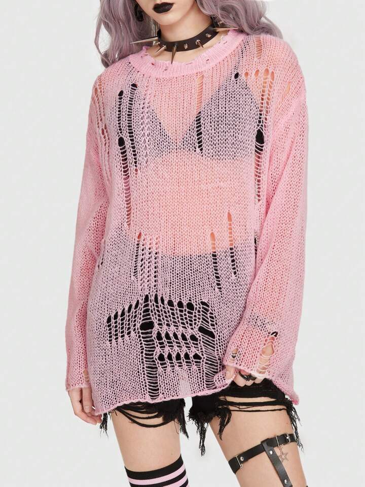 Goth Solid Distressed Sweater