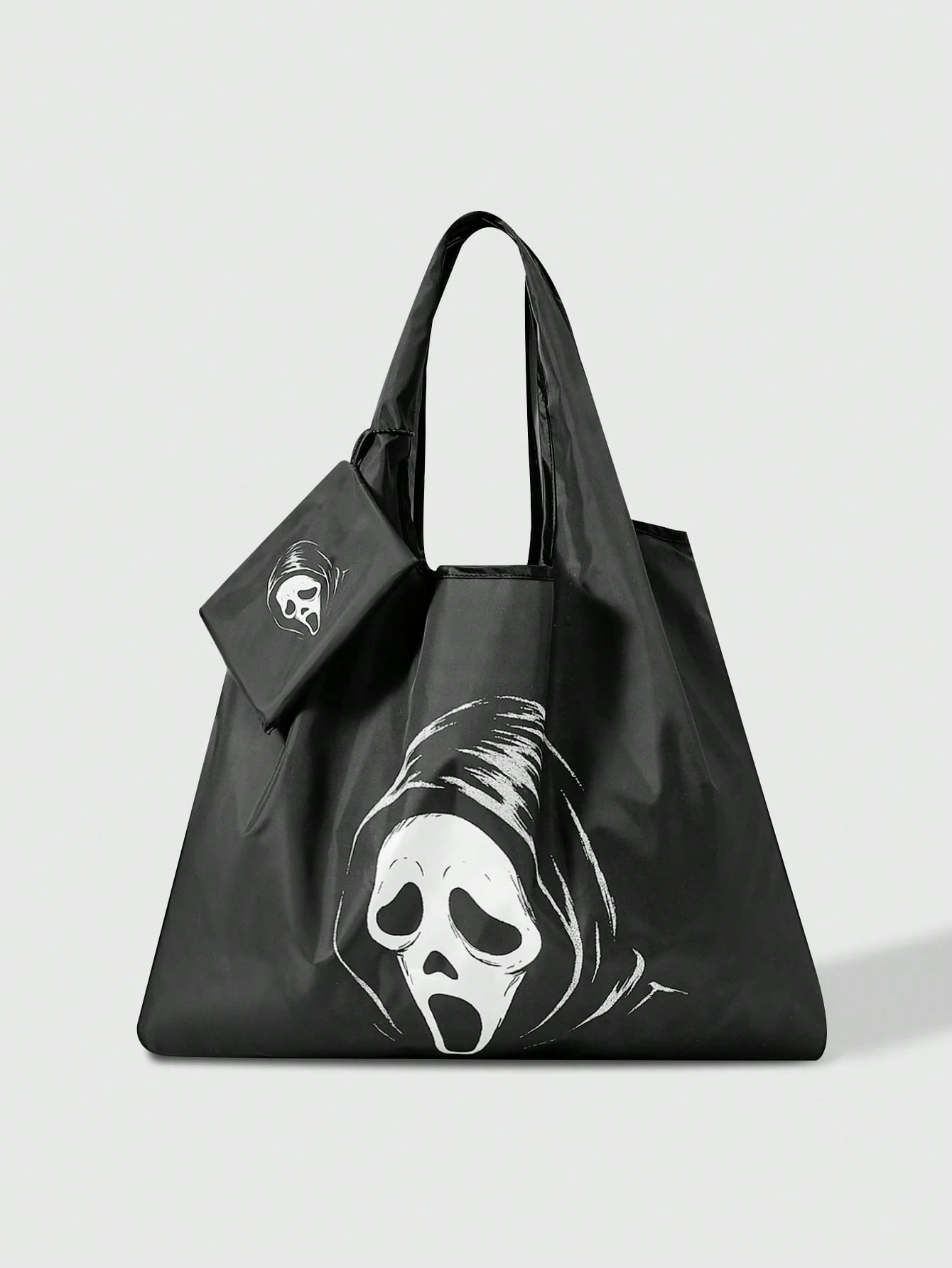 Goth Star Print Large Capacity Foldable Shopper Bag, Stars Hollow Women Bag