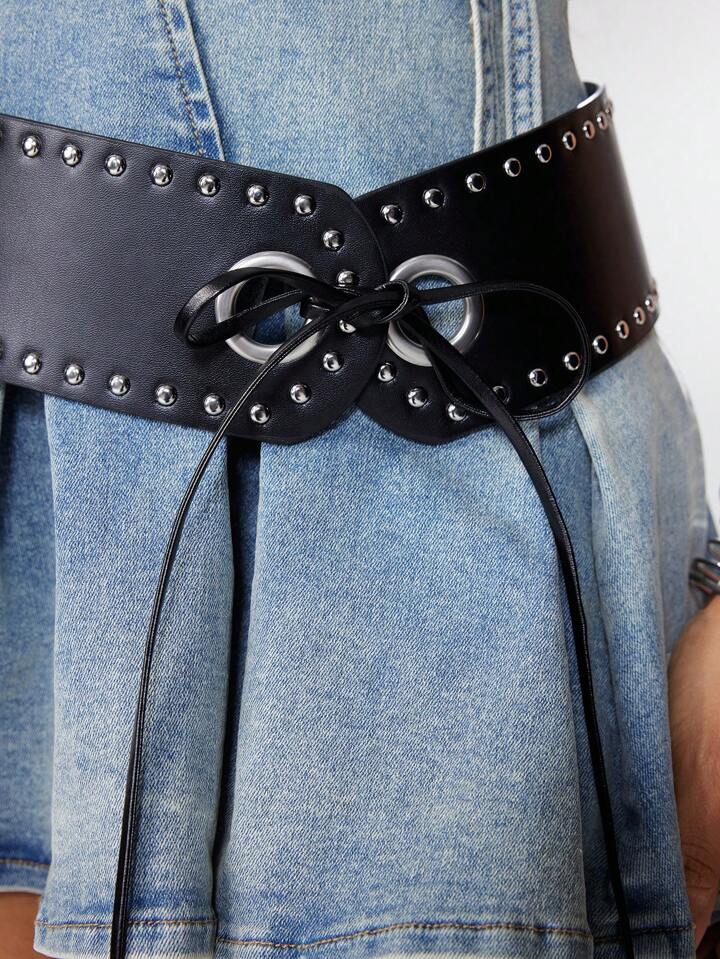 Goth Street Style Rivet Waist Belt, Casual & Fashionable For Daily Wear