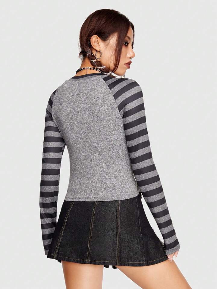Goth Striped & Graphic Print Tee