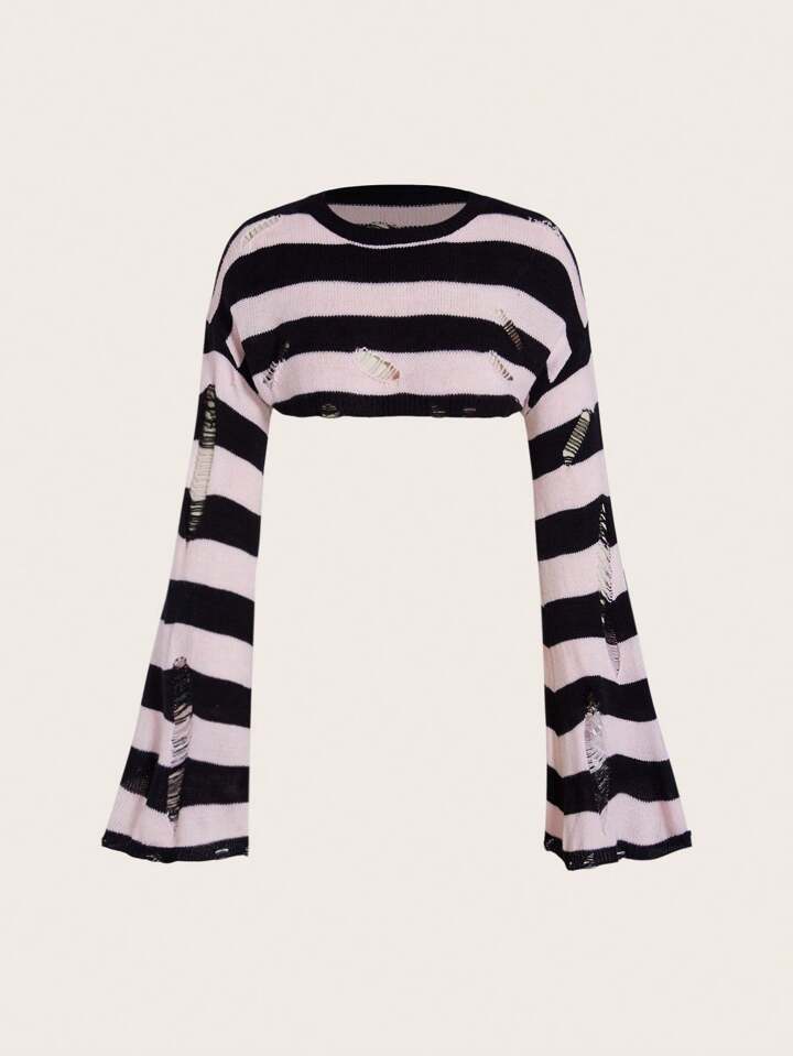 Goth Striped Pattern Drop Shoulder Crop Sweater