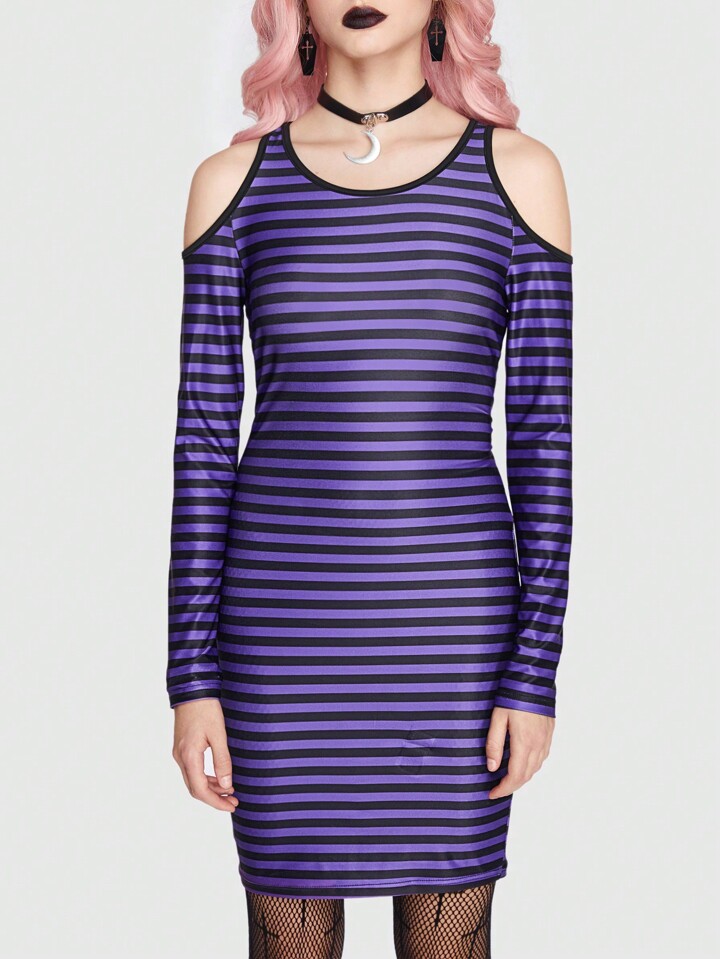 Goth Striped Print Bodycon Dress Without Belt
