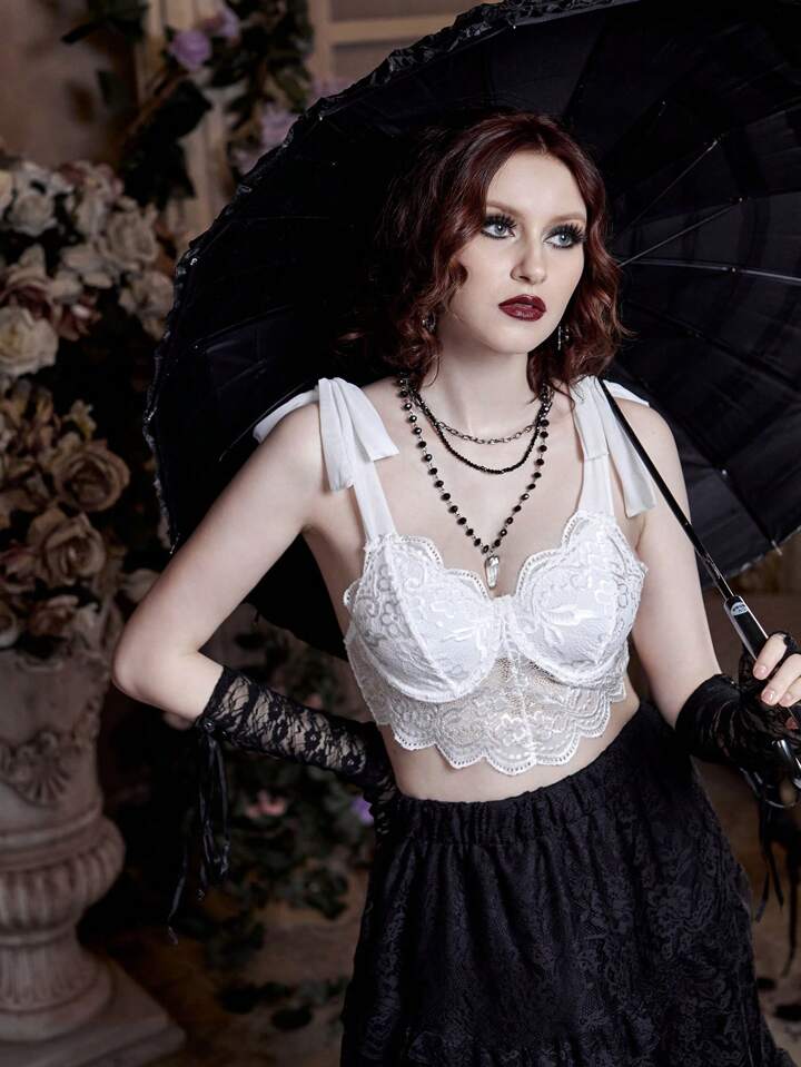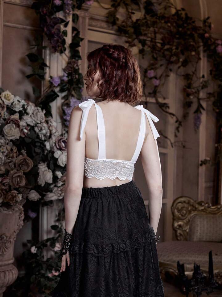 Goth Tie Shoulder Scallop Trim Lace Cami Top