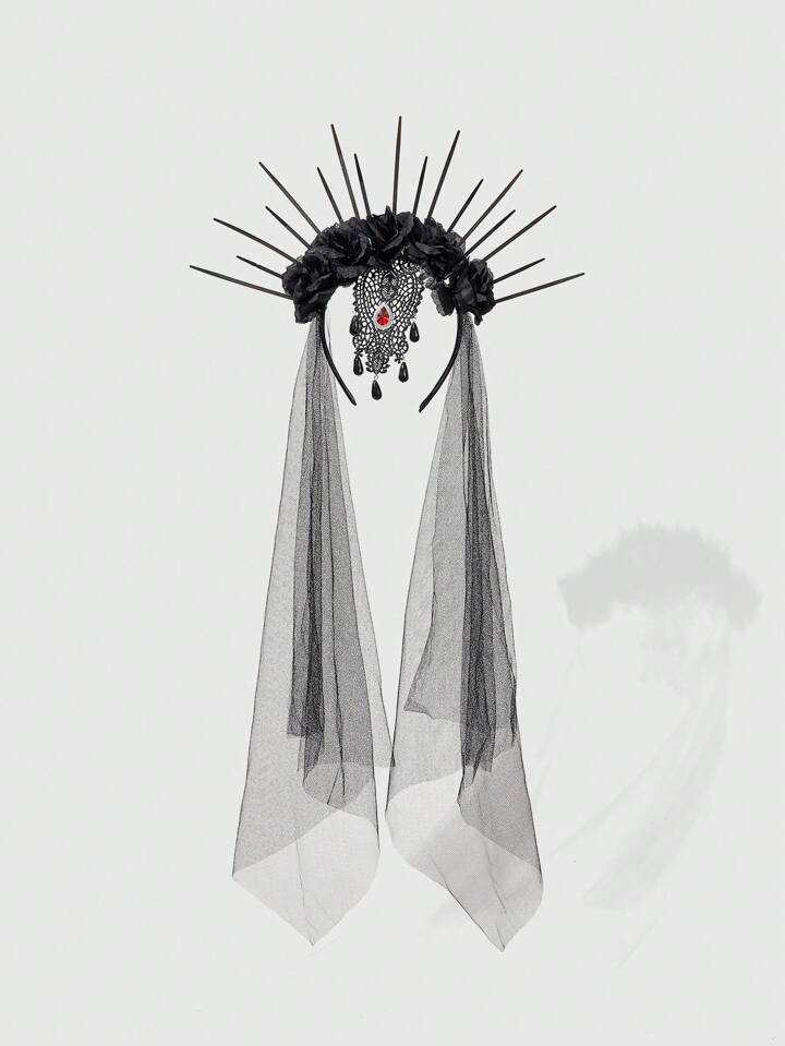 Goth Vintage Style Black Rhinestone Decorated Mesh Headband