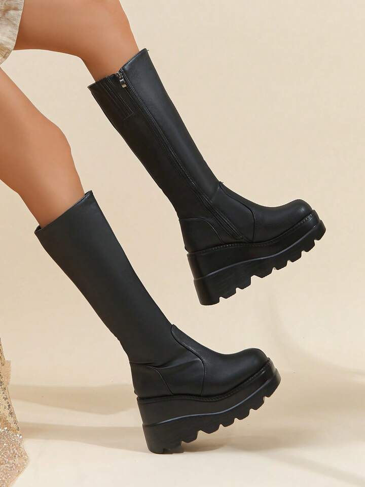 Goth Women Minimalist Side Zipper Flatform Boots, Cool Outdoor Fashion Boots