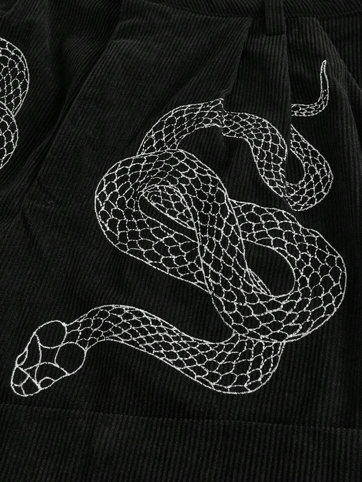 Goth Women Snake Print Corduroy Shorts