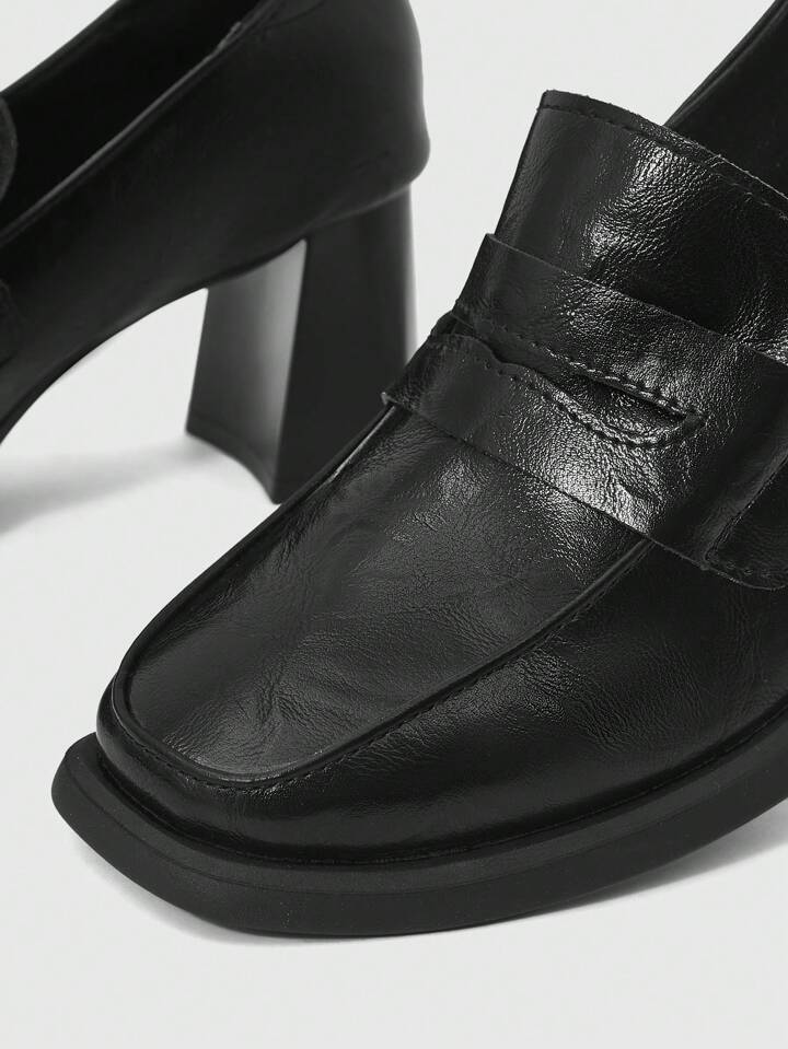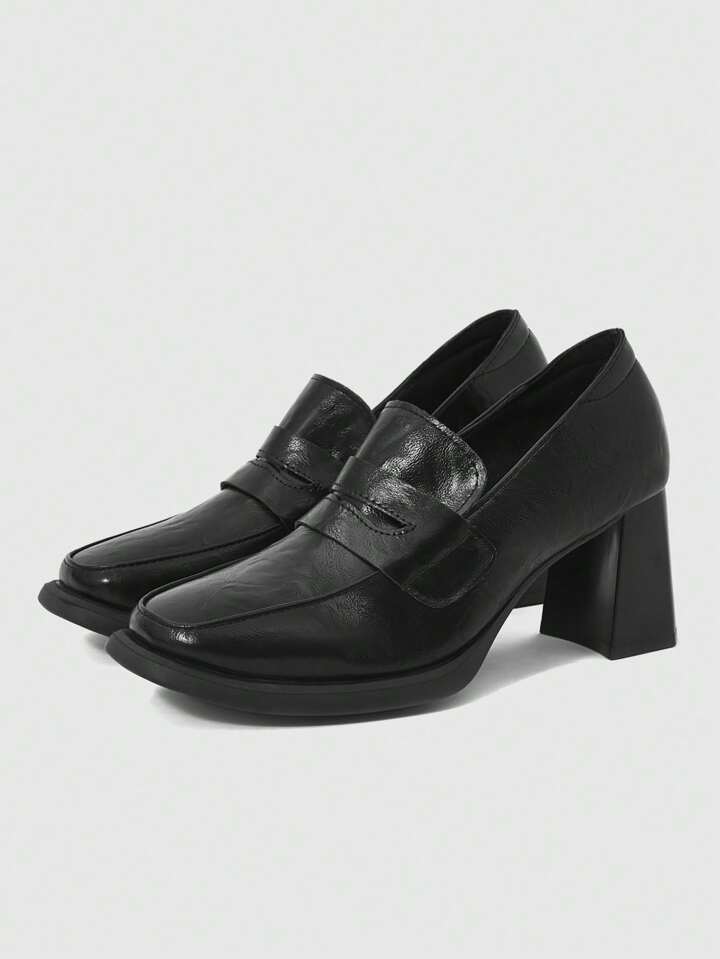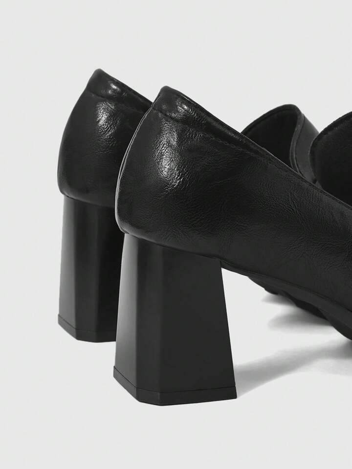 Goth Women's Black Closed Toe Mule Shoes, Chunky Heel Slip-On Loafers, Office Work Formal Pumps
