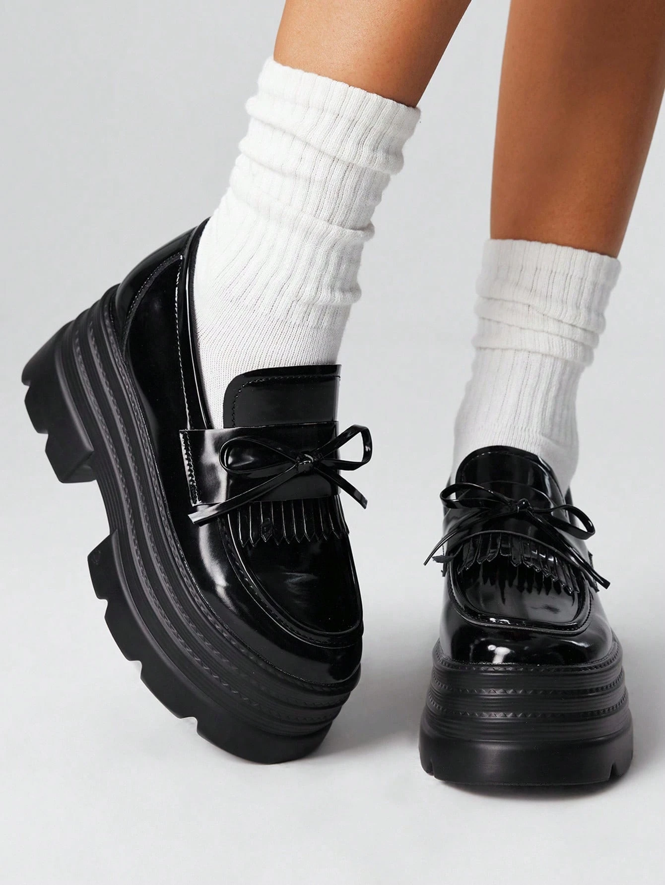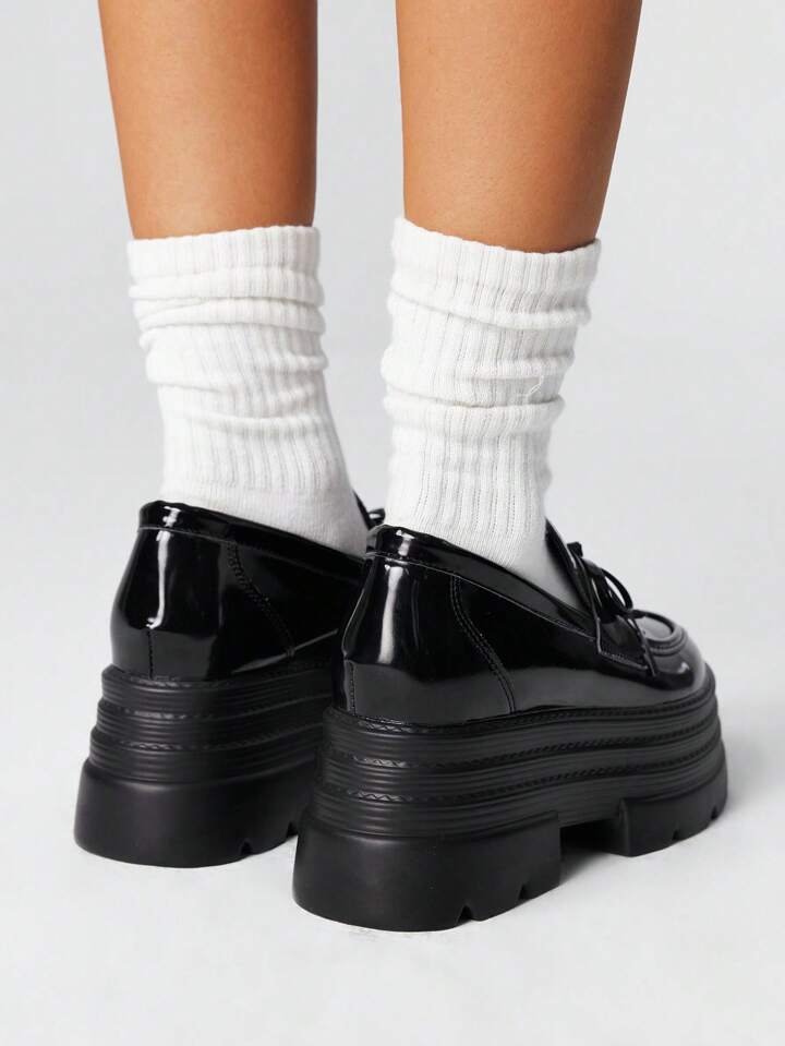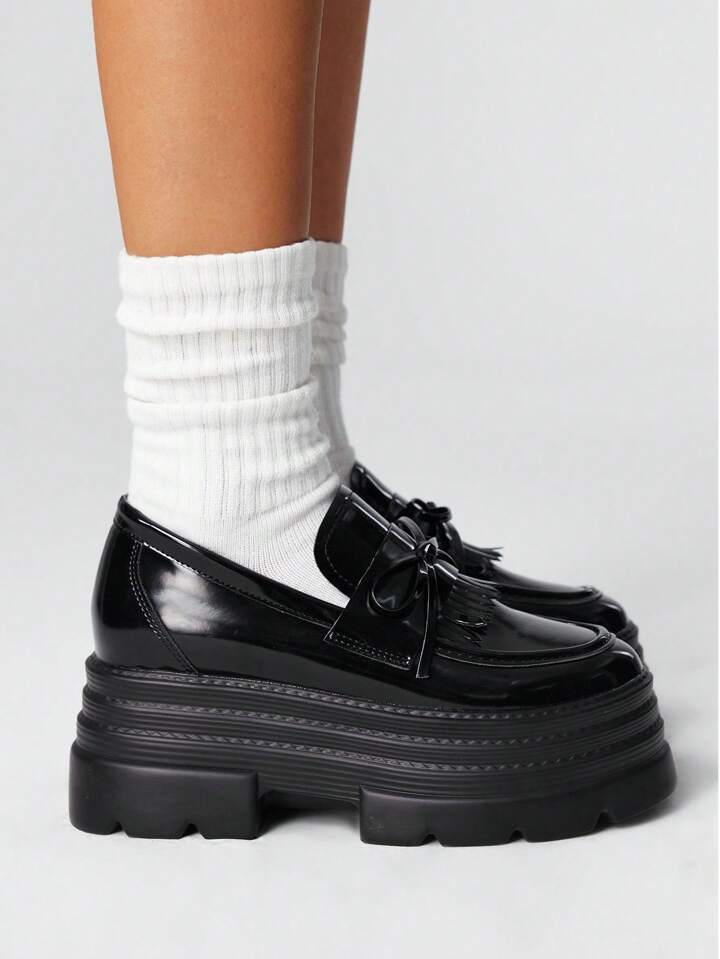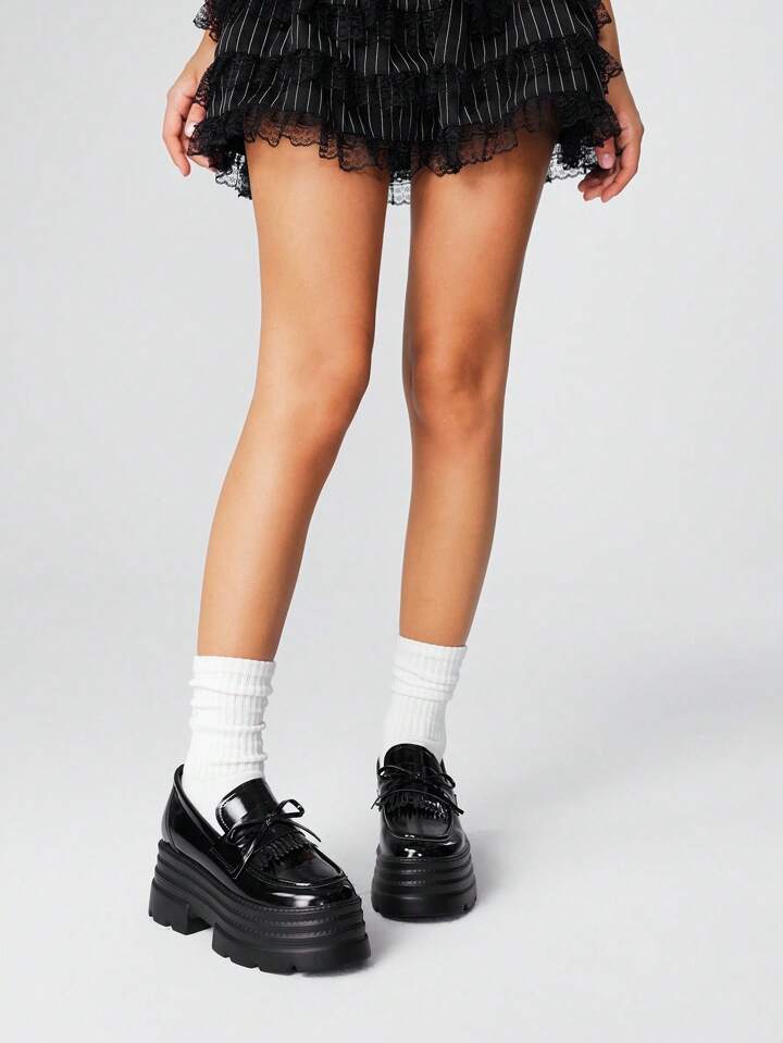 Goth Women's Black Loafers Slip-On Mary Jane Leather Shoes, Japanese School Uniform Style, Work Shoes, Platform & Thick Bottom Flats