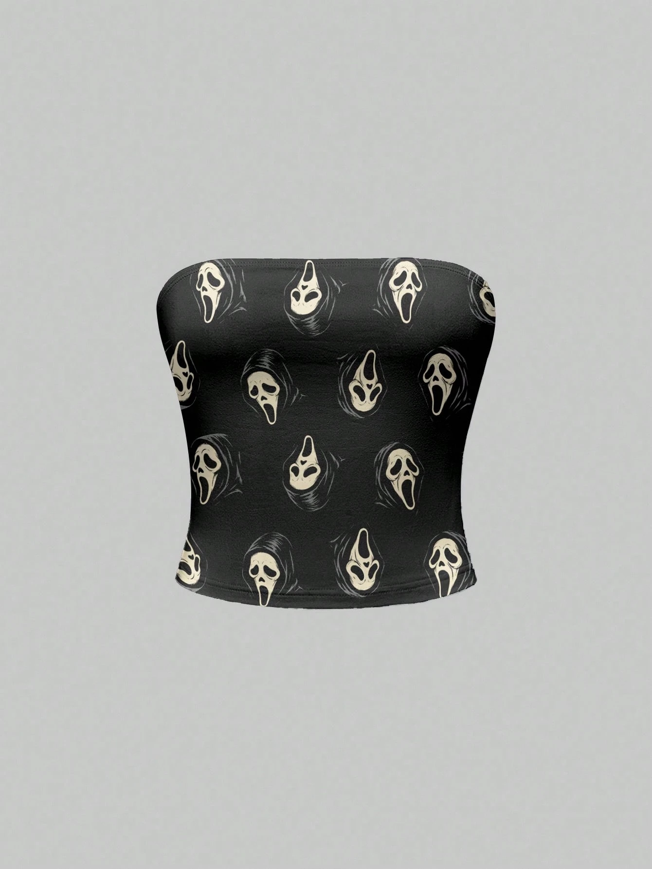 Goth Women's Black Scream Horror Character Bandeau Top For Dark Halloween
