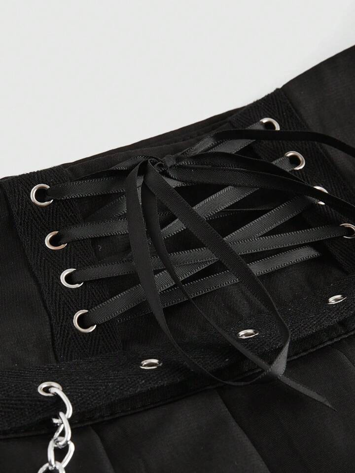 Goth Women's Chain Detail Criss-Cross Waistband Pleated Skirt