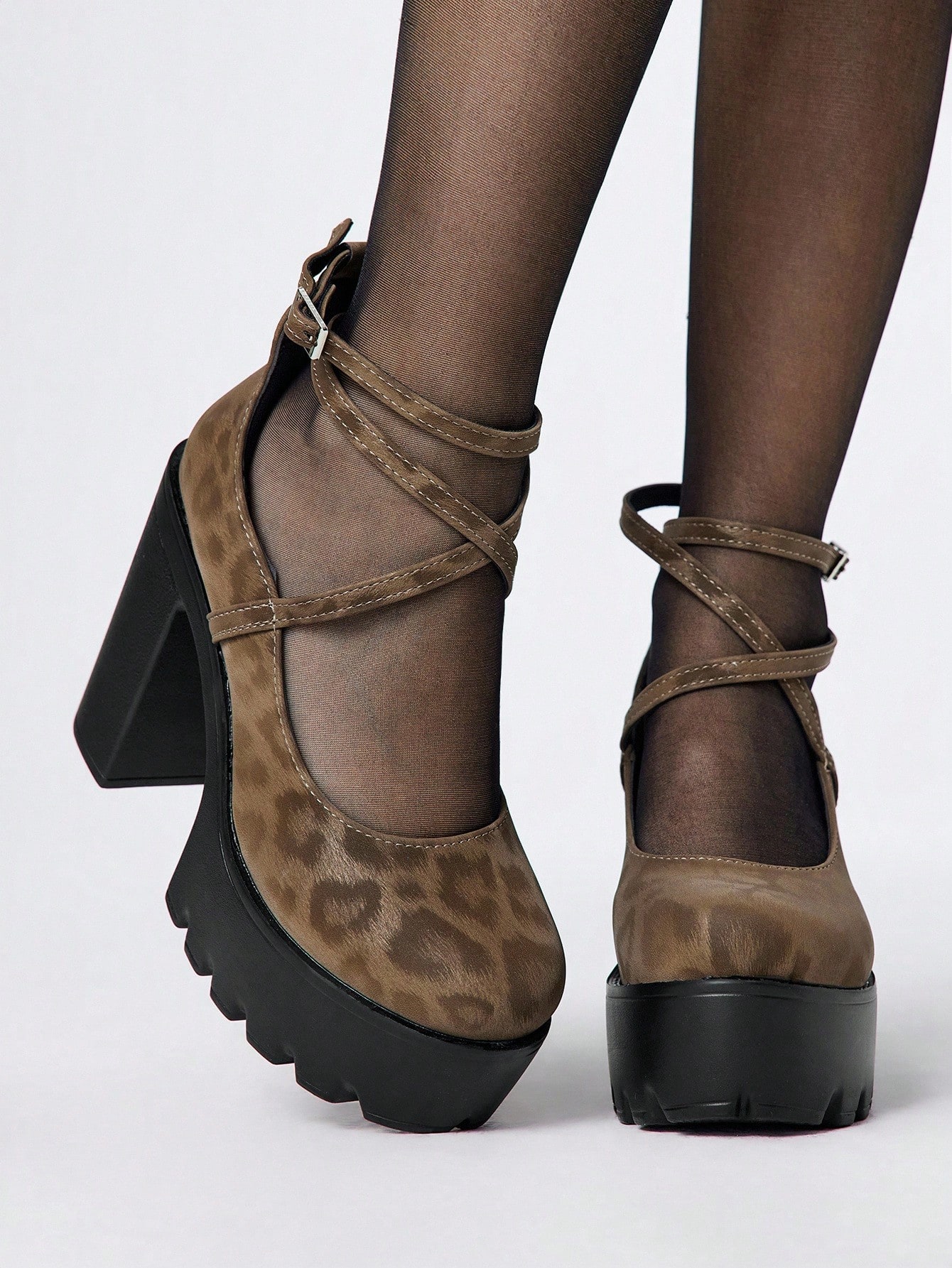 Women's Closed Toe Cross Strap Mary Jane Shoes, Punk Goth Rock Style, Thick Heel, Strap, Japanese JK Uniform, Waterproof Platform, Formal Work High Heels