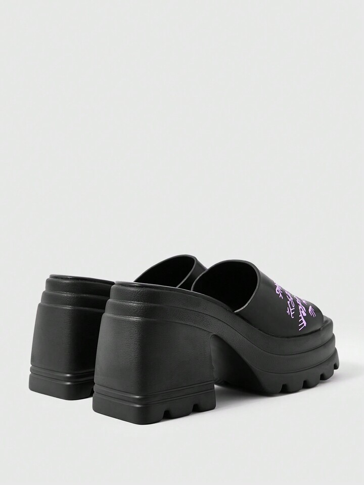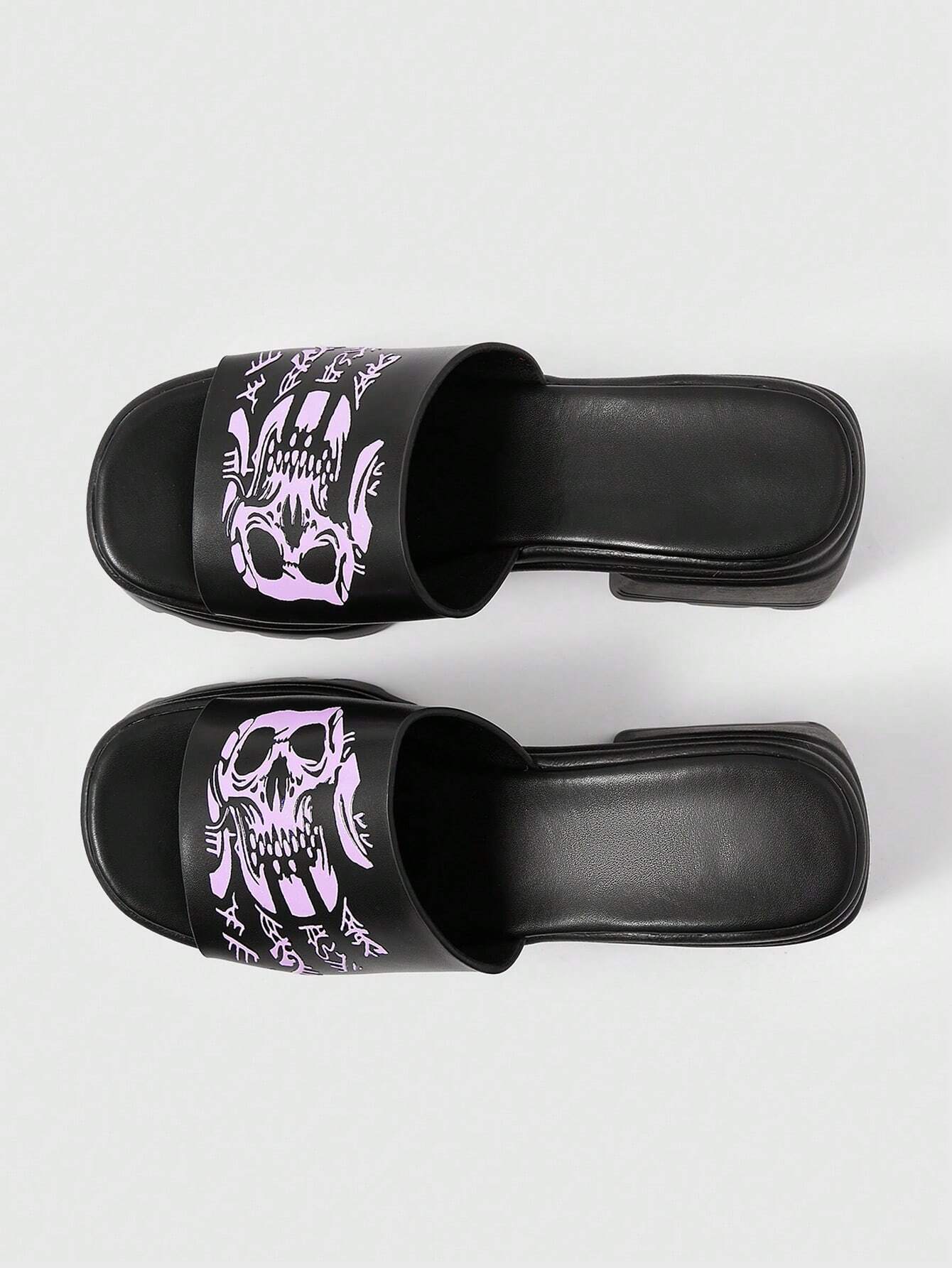 Goth Women's Fashionable Comfortable Platform Skull Slippers, Suitable For Halloween