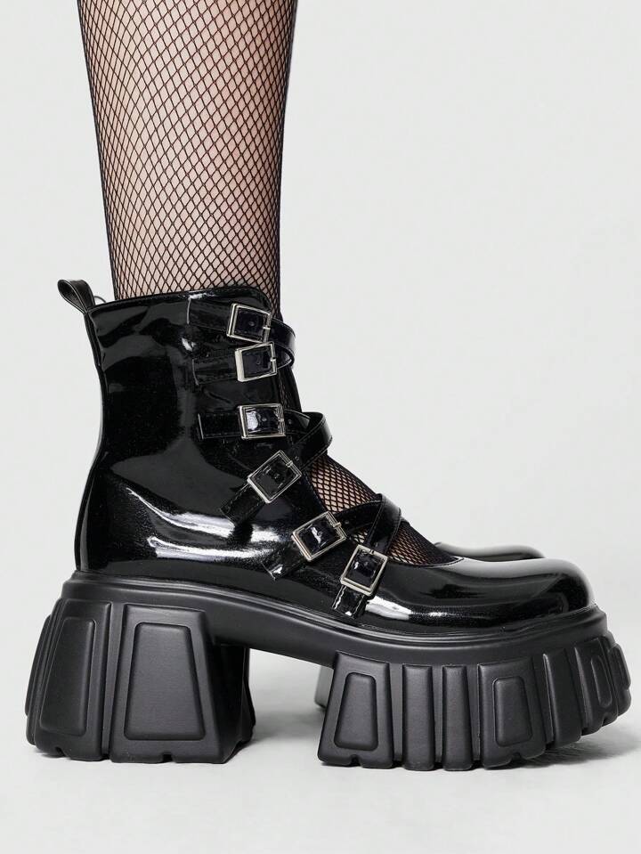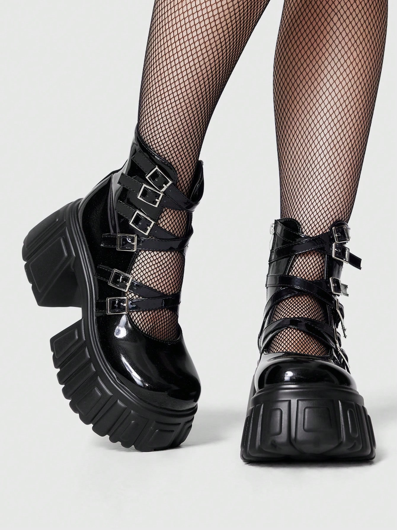 Goth Women's Multiple Adjustable Buckle Design Fashion Wedge & Platform Pumps