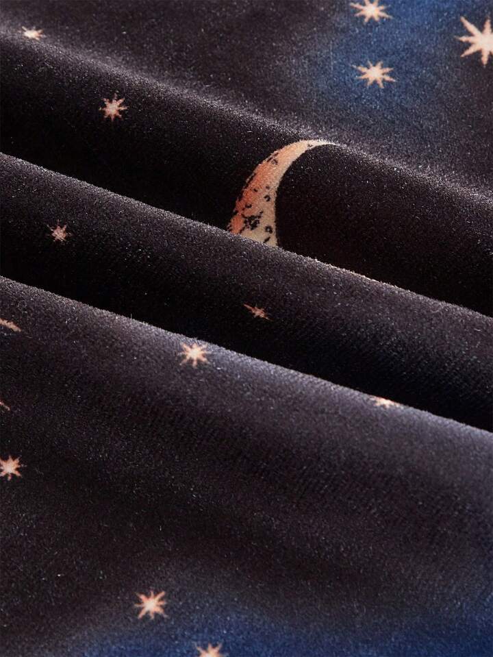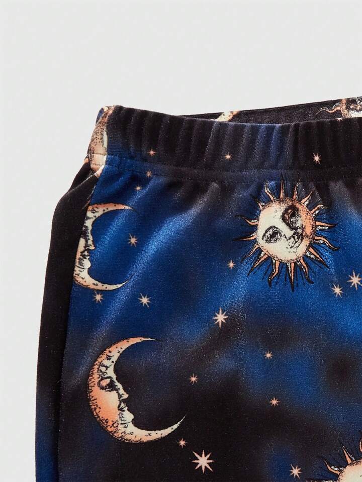 Goth Women's Mysterious Elegant Casual Tie Dye Flared Pants With Star, Sun, Moon Print