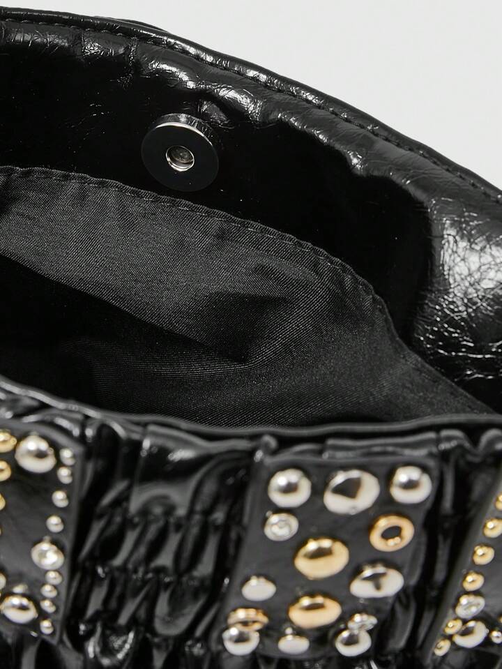 Goth Women's Punk Black Glossy Pleated Rivet & Grommets Decor Shoulder Bag