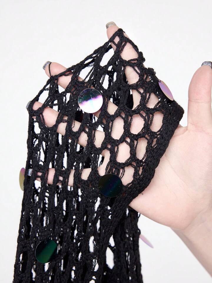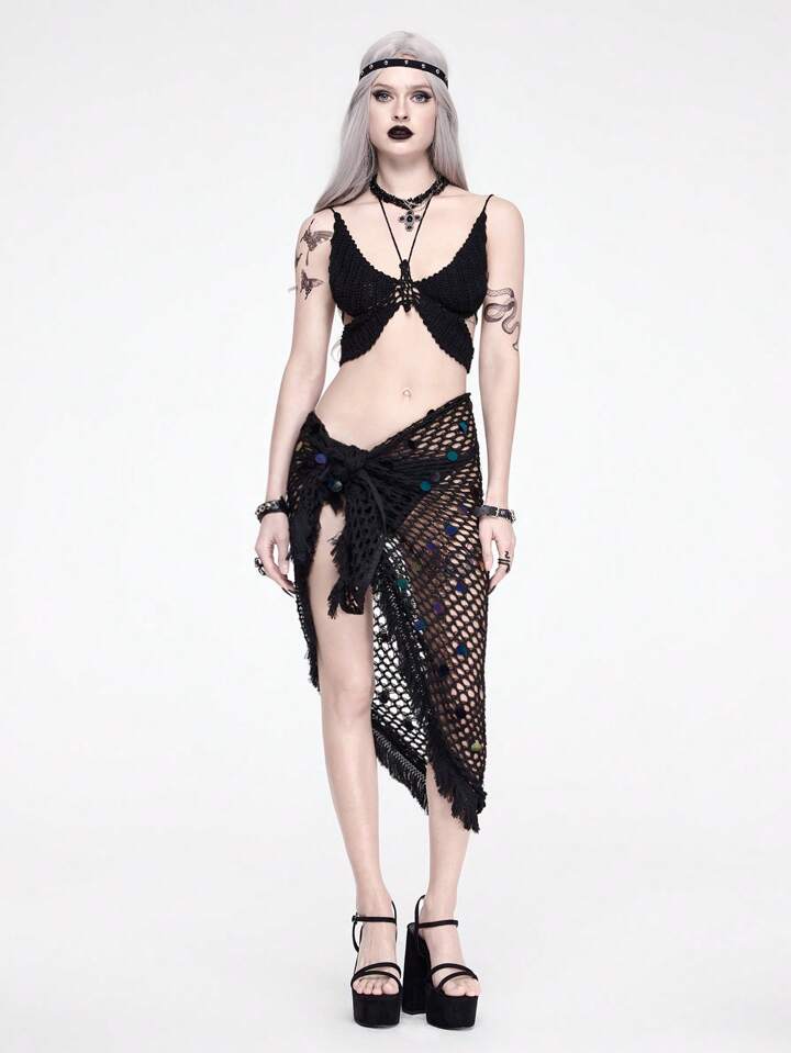 Goth Women's Sexy Fully Sheer Crochet Sequin Beach Dress
