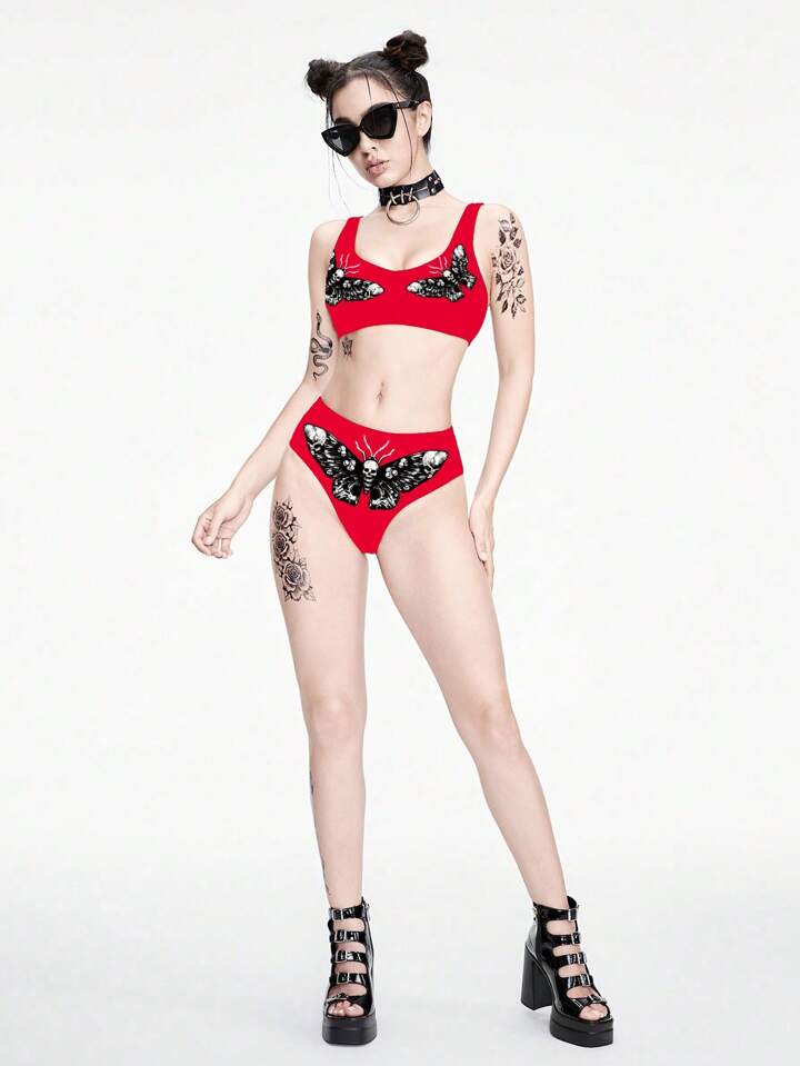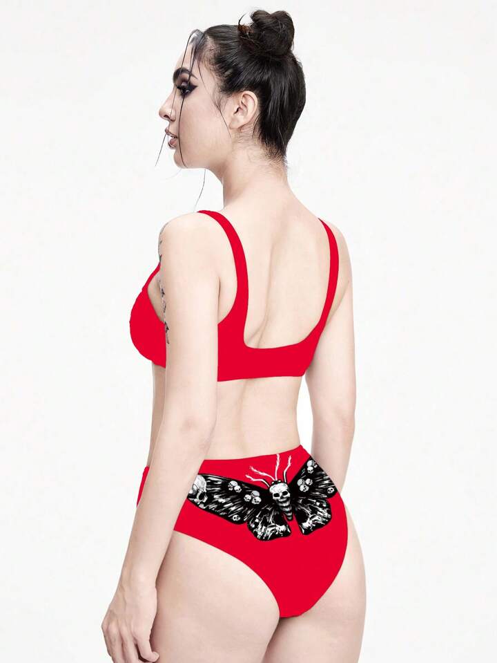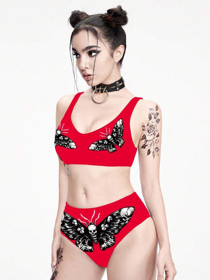 Goth Women's Sexy Skull Printed Bikini Set, Two-Piece Bikini Set Summer Beach