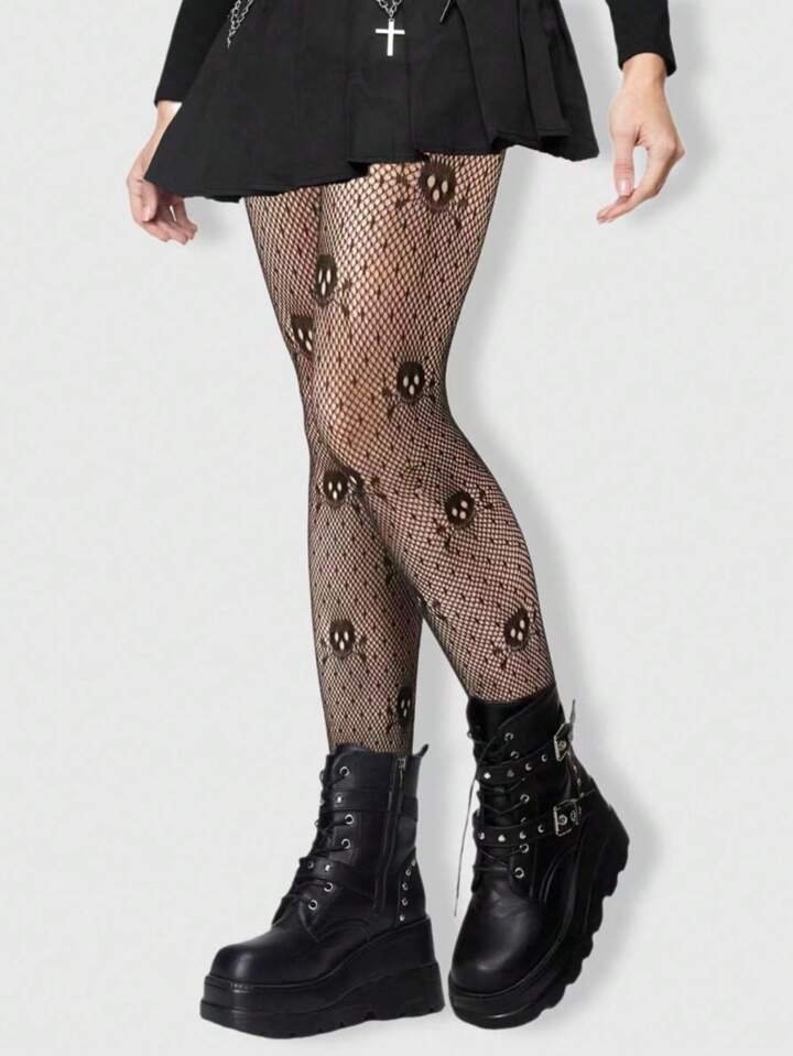 Goth Women's Skeleton Pattern Hollow Pantyhose, Suitable For Pairing With Skirts, Halloween