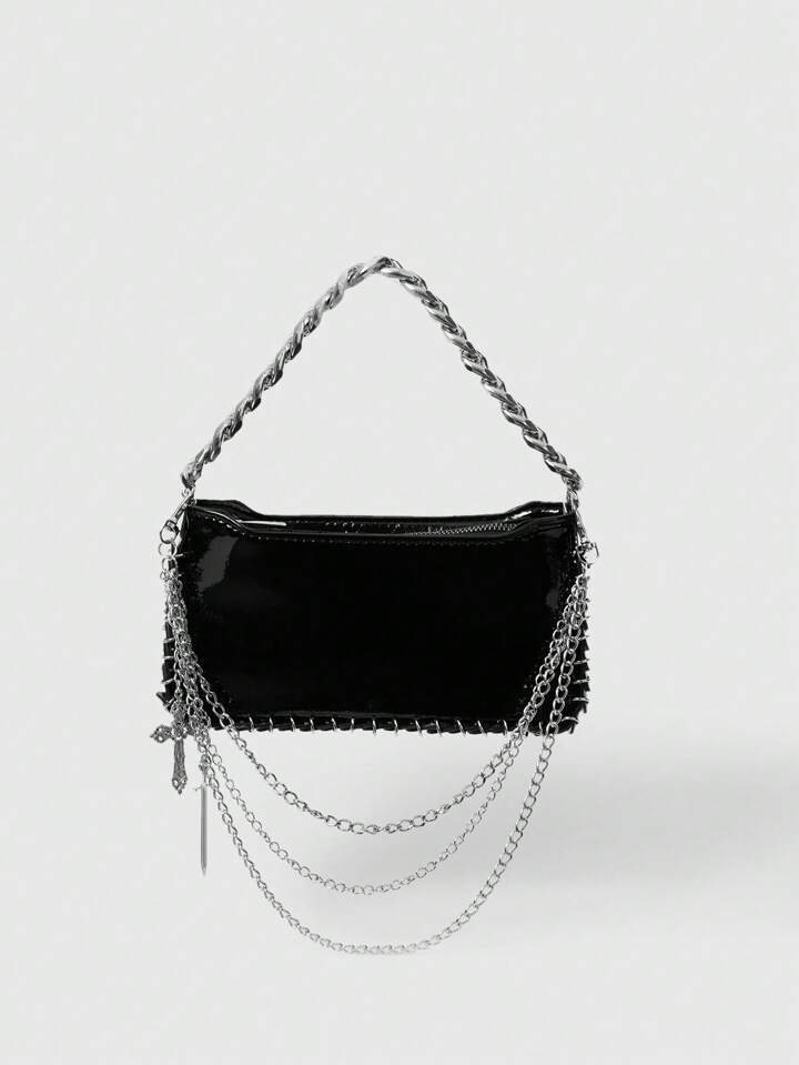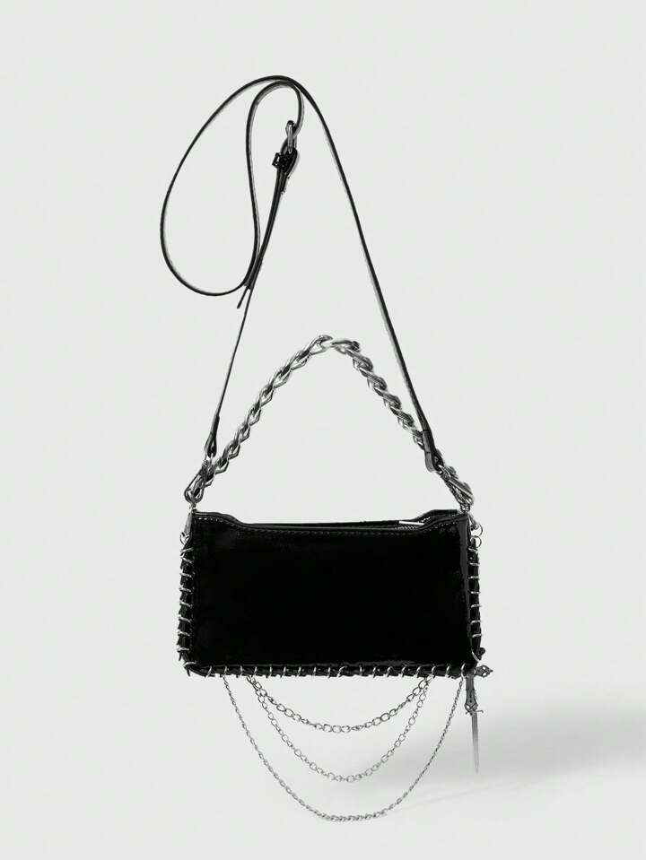 Goth Women's Solid Color Patchwork Chain Design Handbag