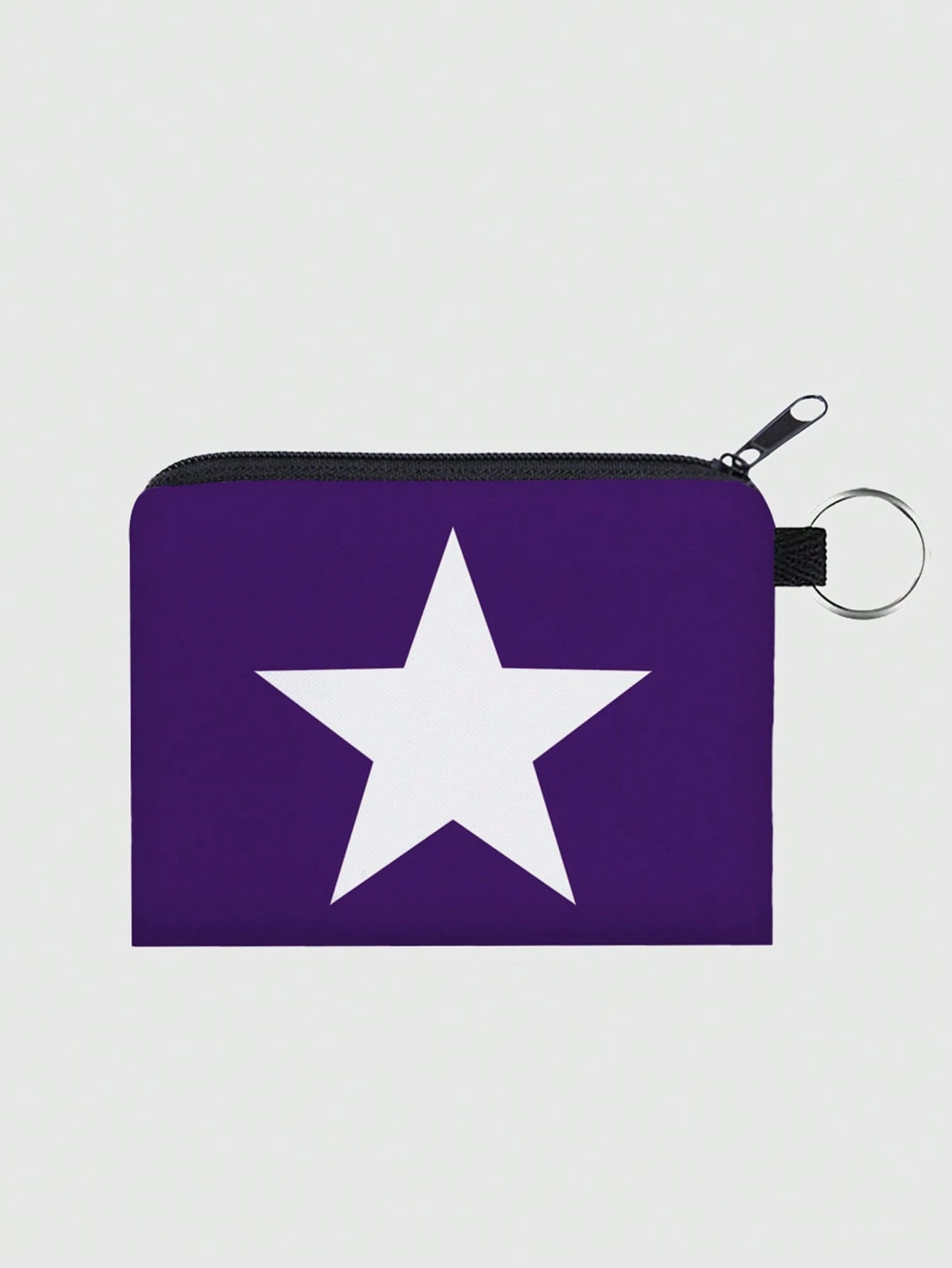 Goth Zipper Mini Coin Purse, Star Pattern, Compact & Portable, Minimalist & Fashionable