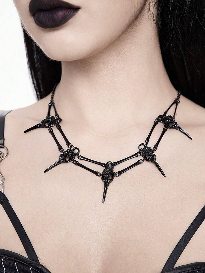 Gothic Bird Skull Necklace Evil Skeleton Wizard Magic Chain Necklace For Women