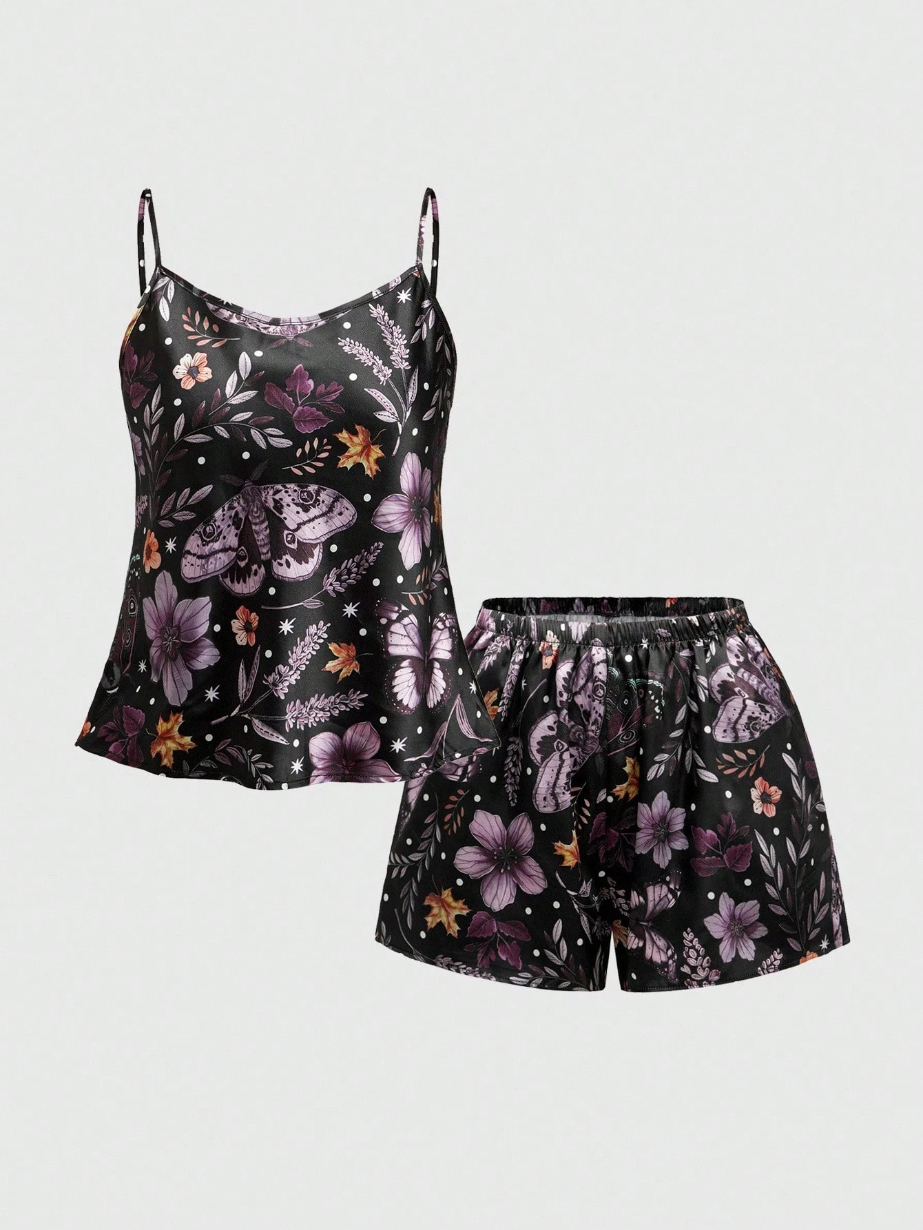 Gothic Butterfly, Snake Skin, Floral Print Satin Camisole & Shorts Pajama Set