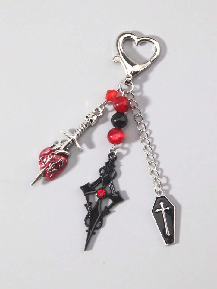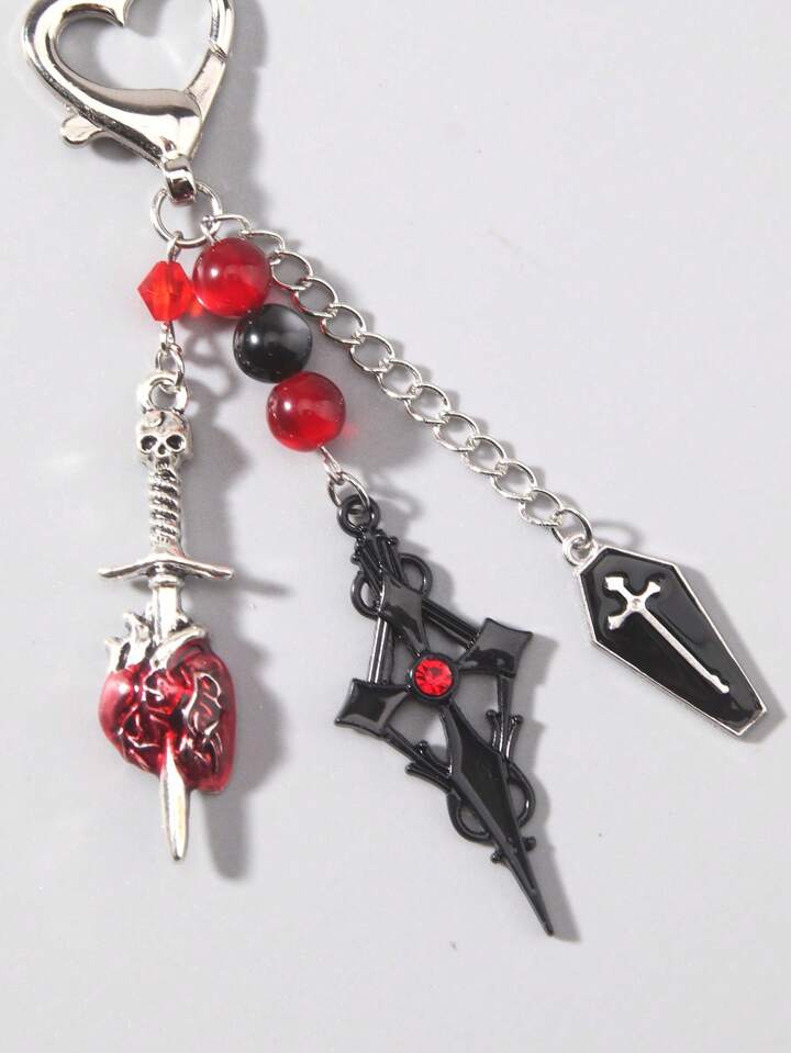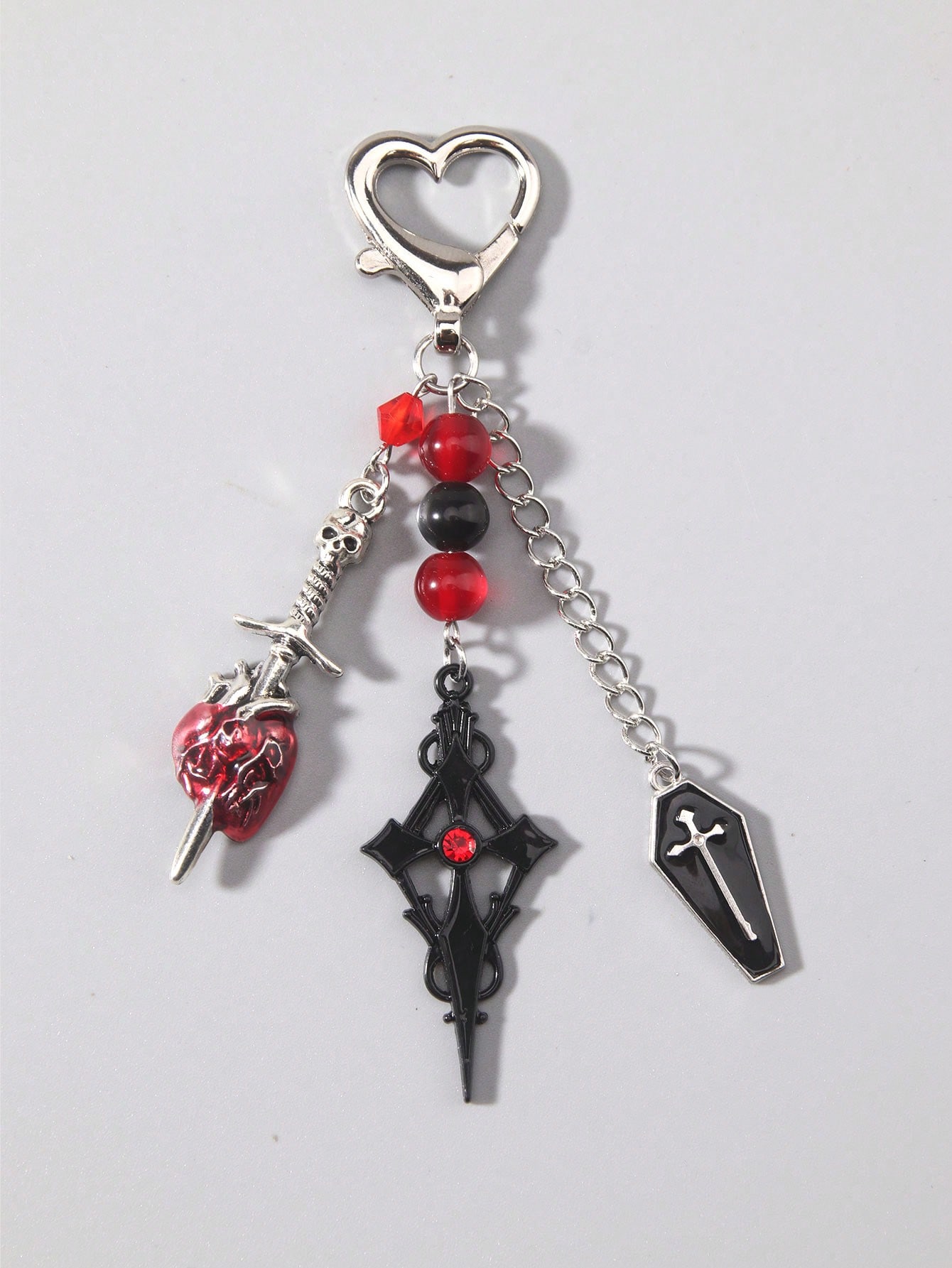 Gothic Cross Black Beaded Pendant, Key Chain, Phone Case Charm, Bag Charm, Unisex Gift, Halloween