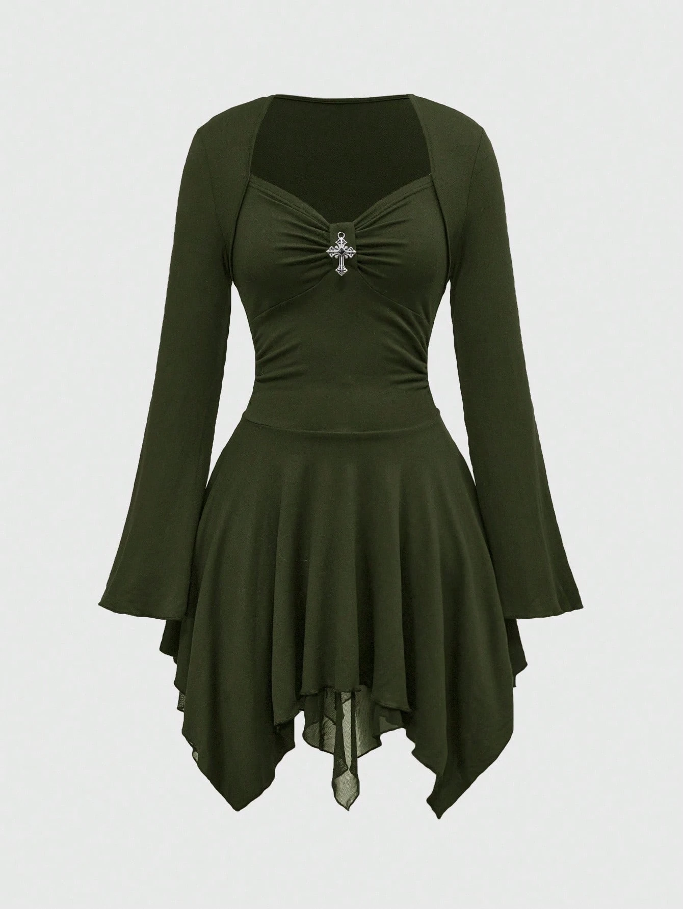 Gothic Cross Decor Asymmetrical Hem Mini Dress