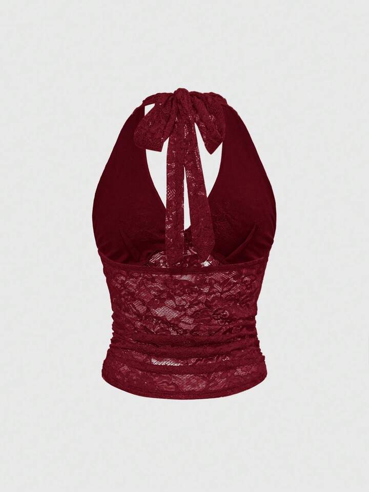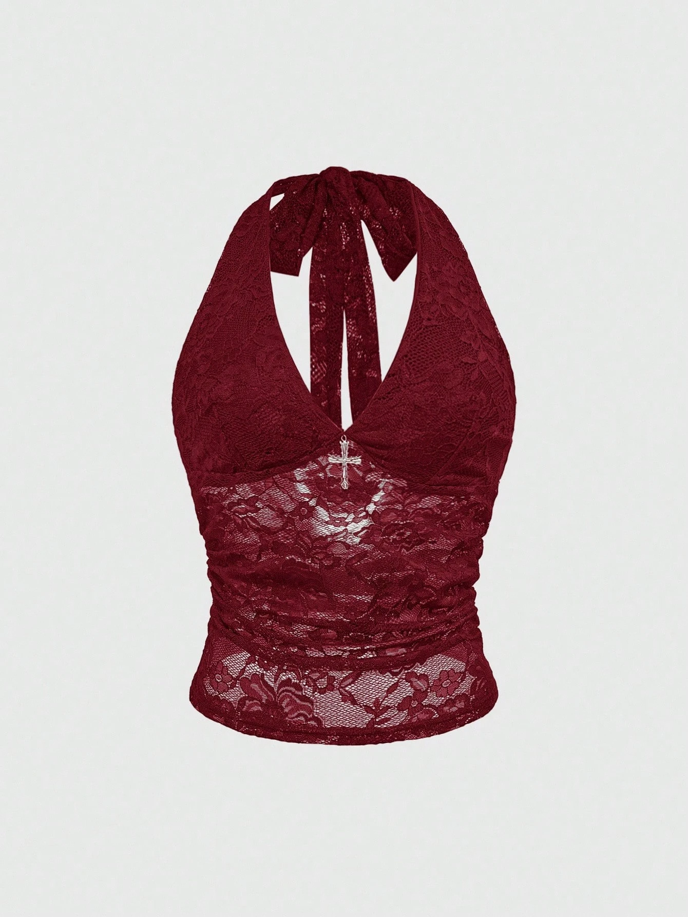Gothic Cross Decor Lace Halter Neck Bodysuit For Women
