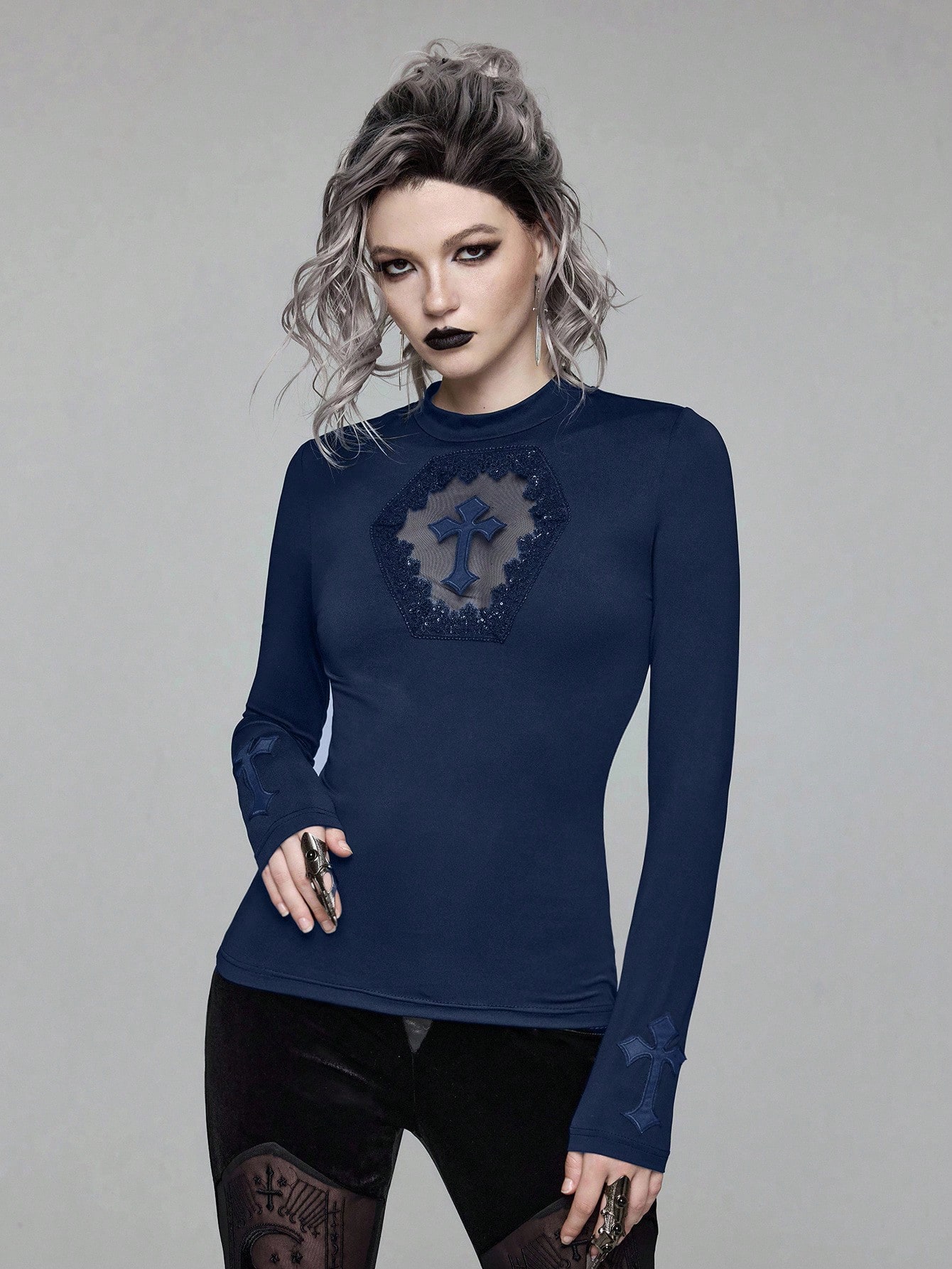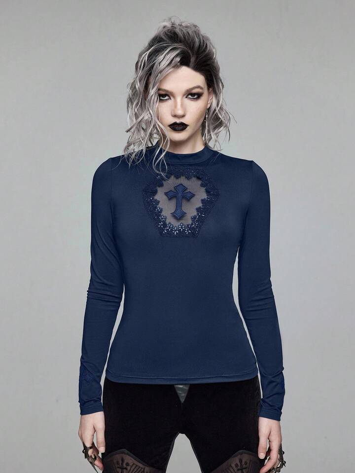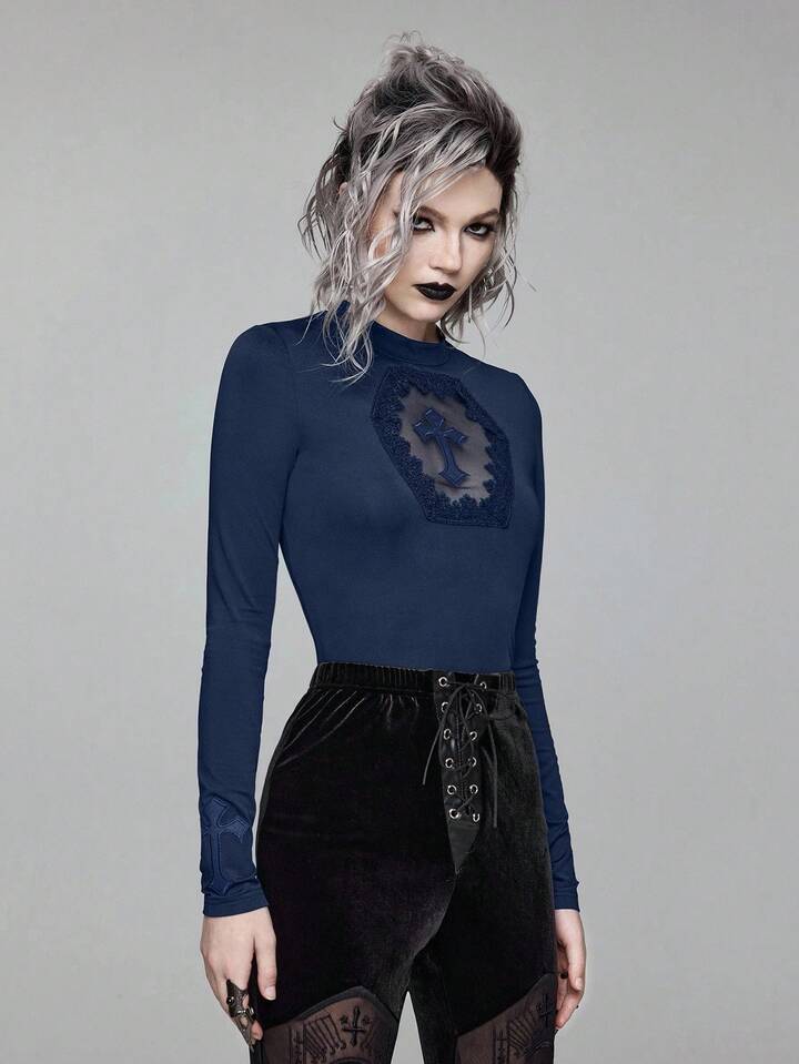 Gothic Cross Hollow Embroidered Sleeveless Top For Women