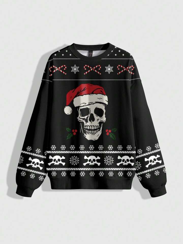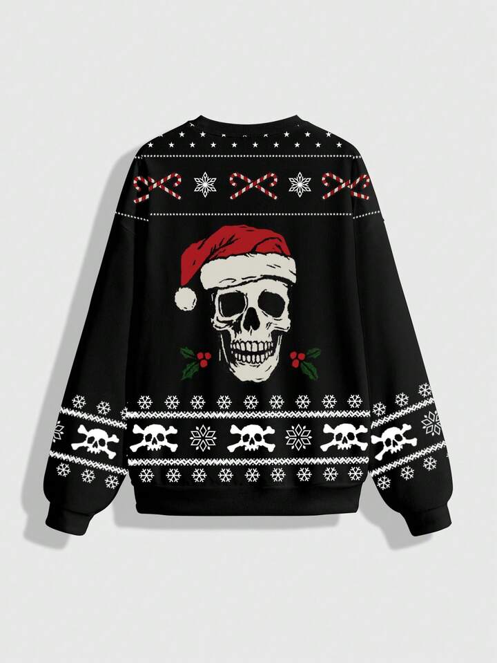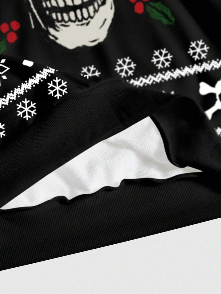Gothic Dark Mysterious Christmas Holiday New Year Snowflake Skull All-Over Print Cute Crew Neck Long Sleeve Women Sweatshirt, Autumn/Winter/Spring