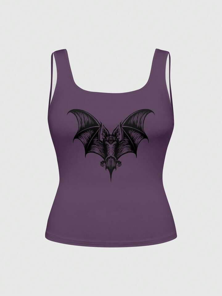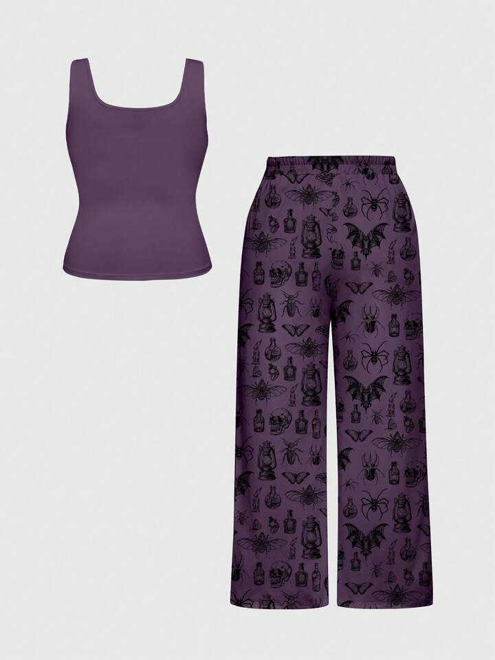 Gothic Insect & Poison Print Plus Size Sleeveless Top And Pants Pajama Set, Casual Loungewear