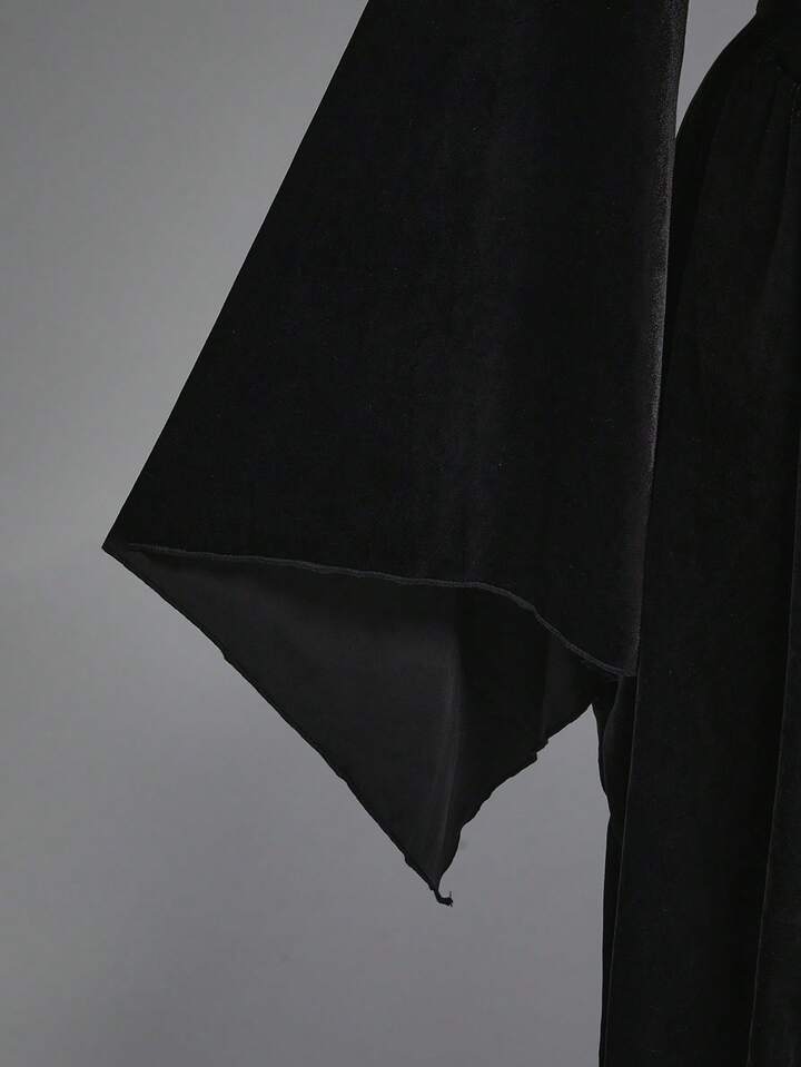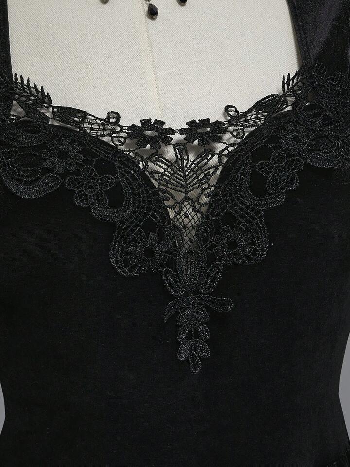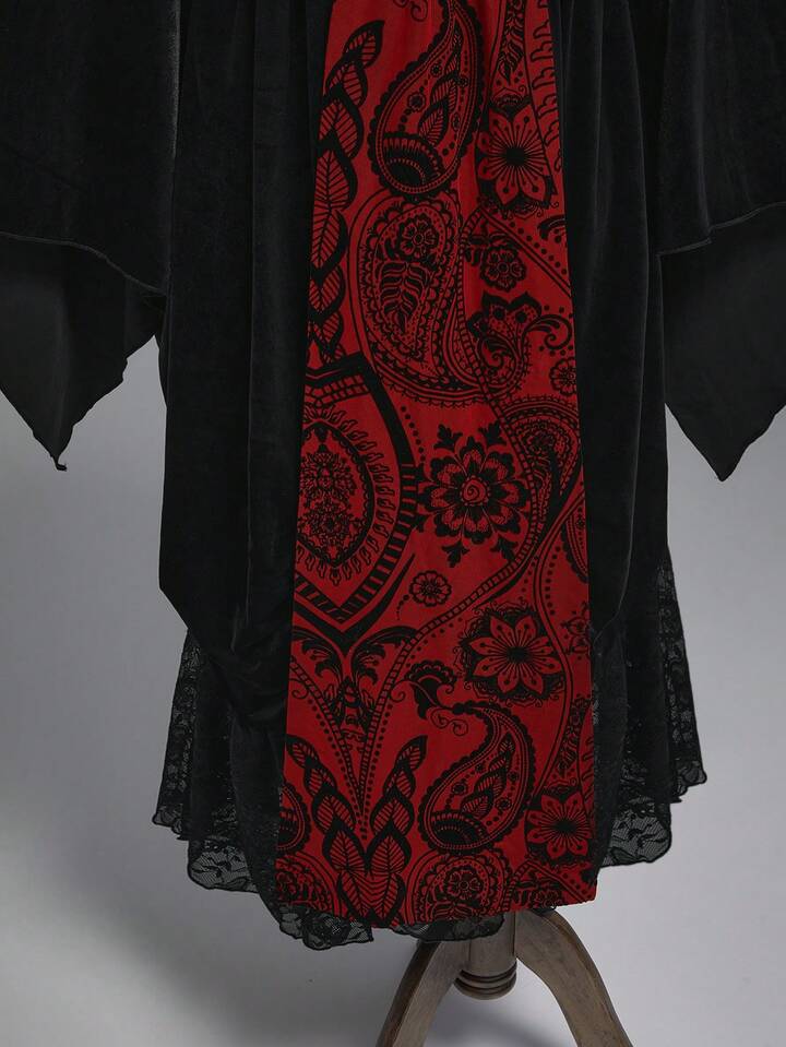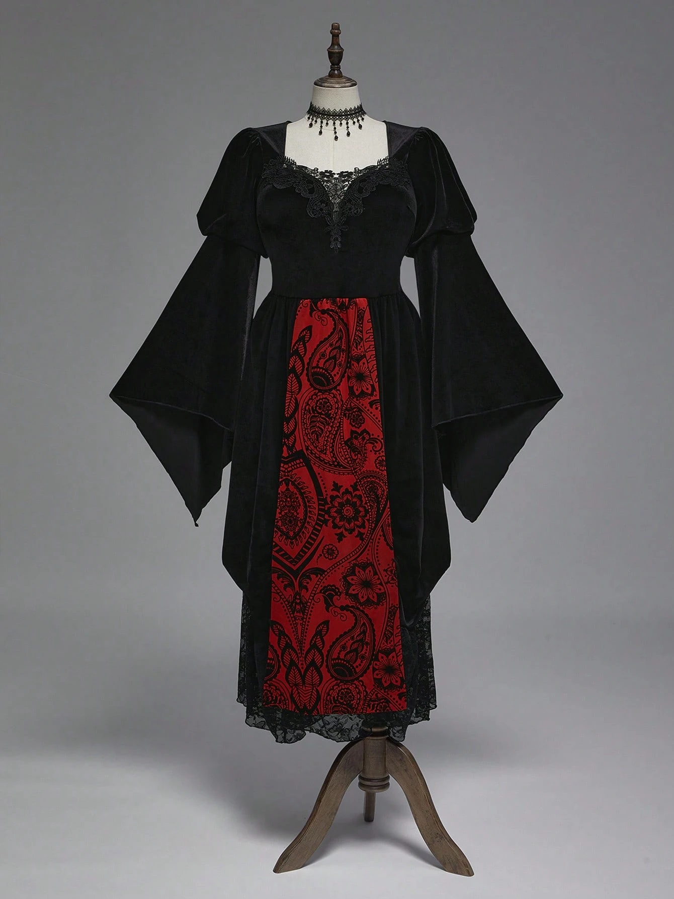 Gothic Luxurious Palace Dark Paisley Pattern Velvet Black Dress, Plus Size, Suitable For Banquet, Party, Formal Occasion, Vintage Elegant Plus Size Dress
