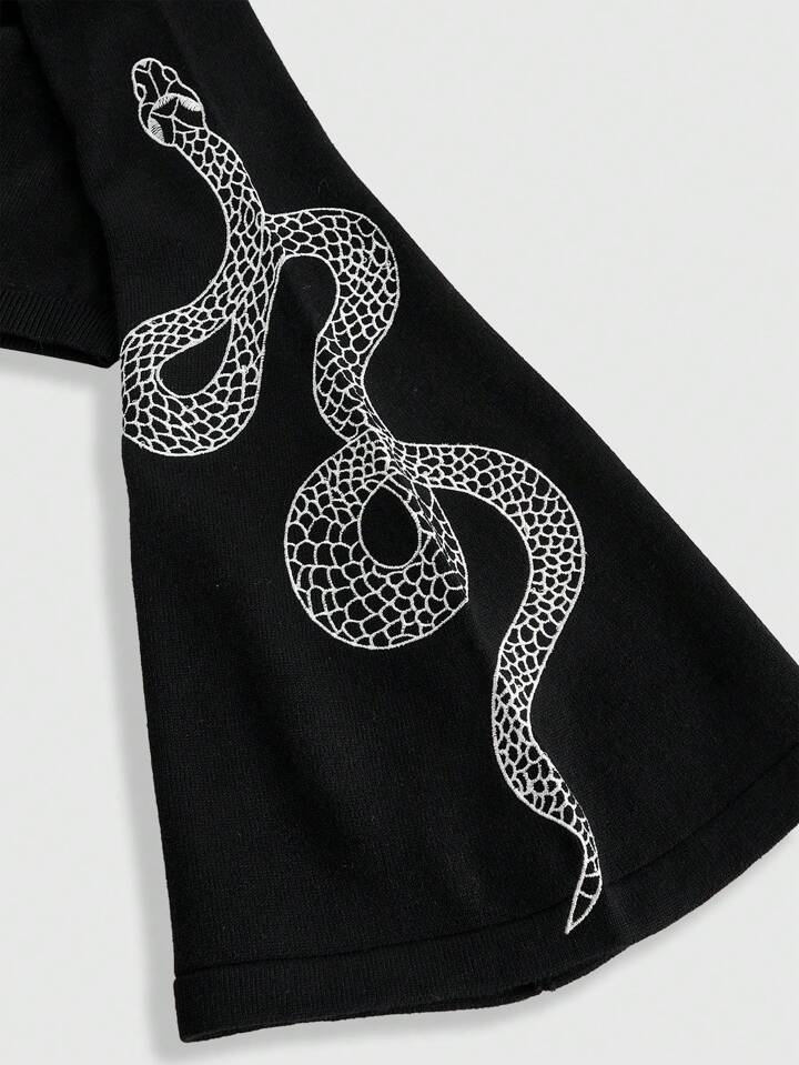 Gothic New Year Snake Embroidery Flare Sleeve Form-Fitting Cropped Sweater