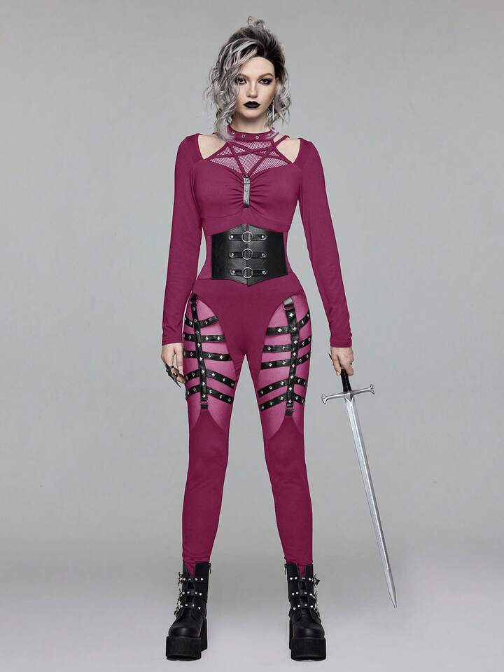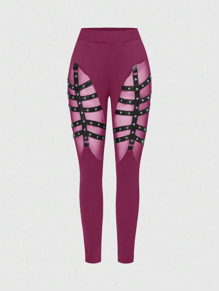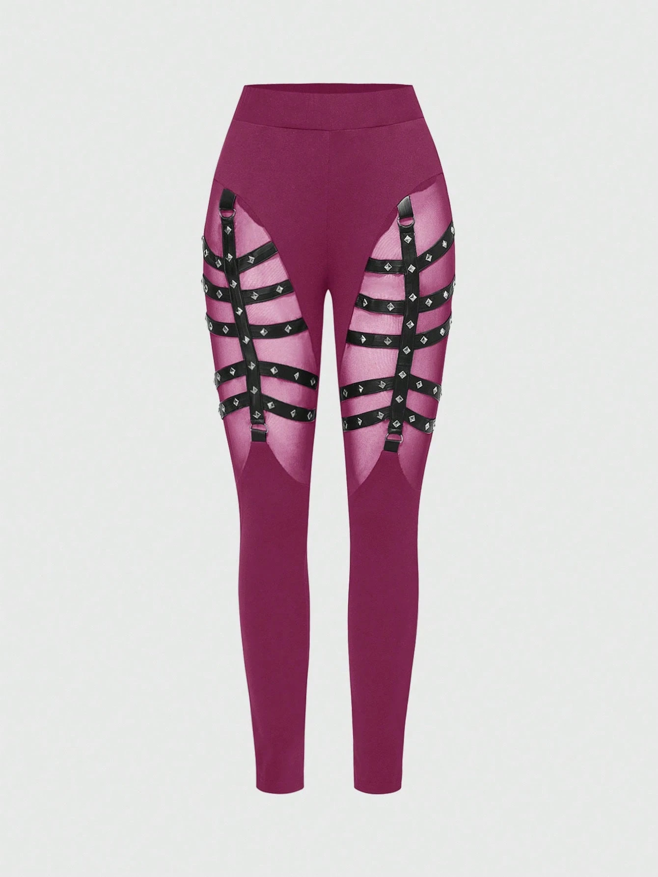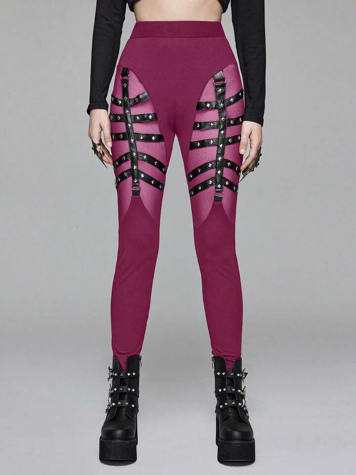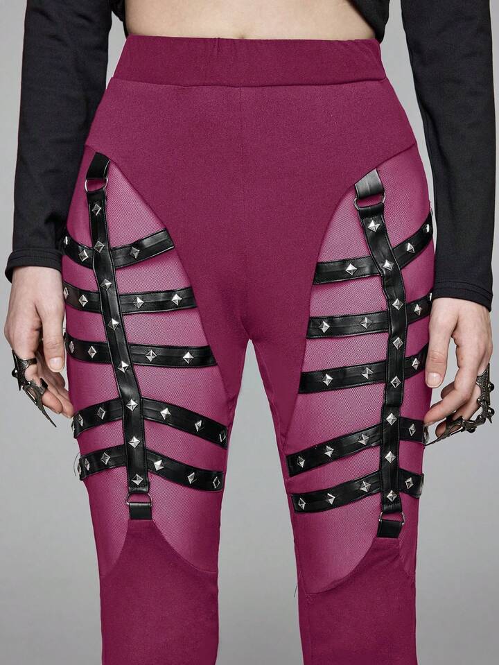 Gothic Punk Style Women's Skinny Leggings With Straps And Rivets
