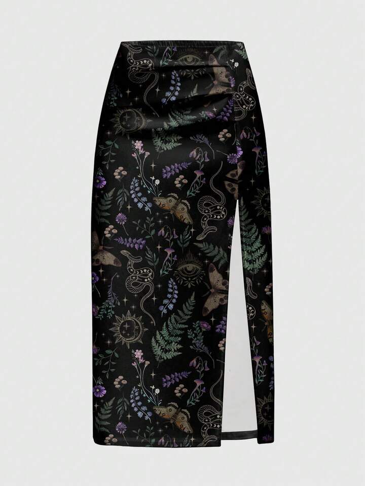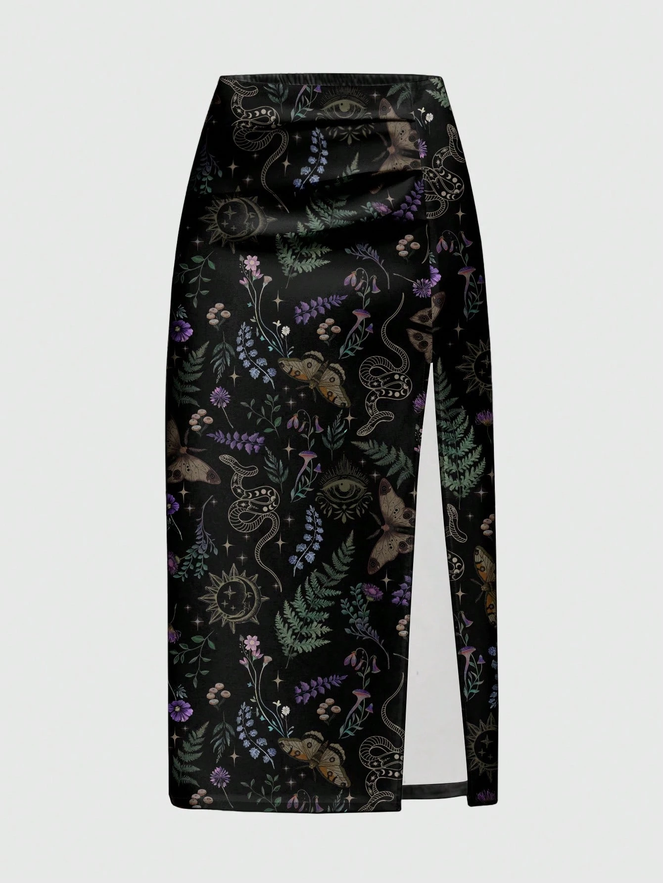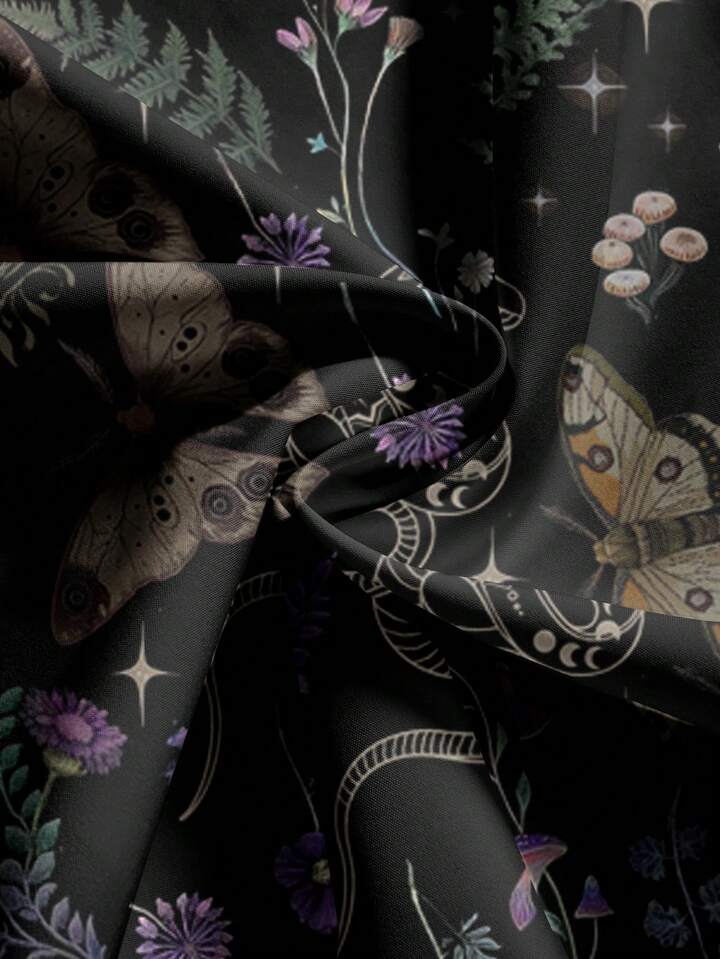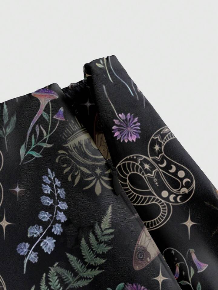 Gothic Romantic Dark Halloween Mysterious Forest Plant Moth Butterfly Sun Moon Star Snake Sun Moon Star Mushroom Flower Women Skirt