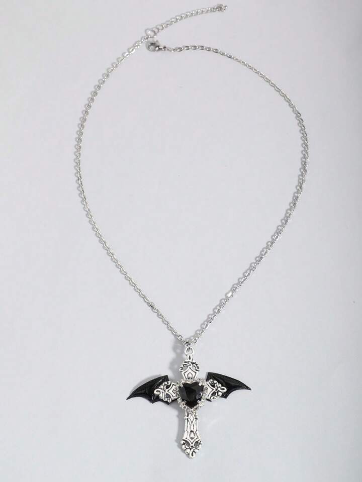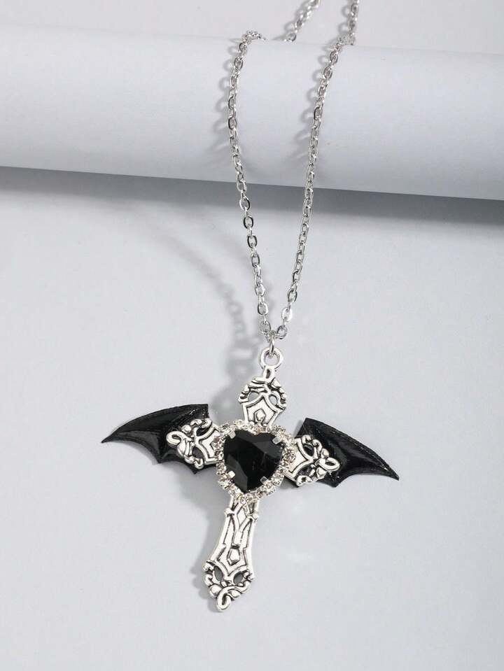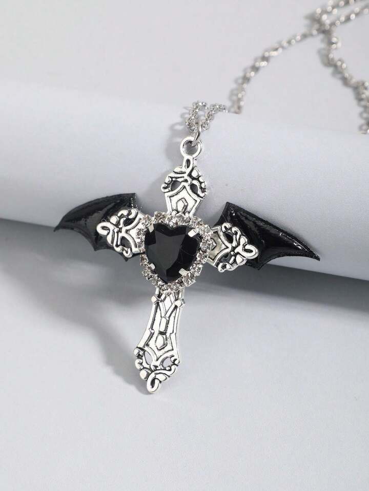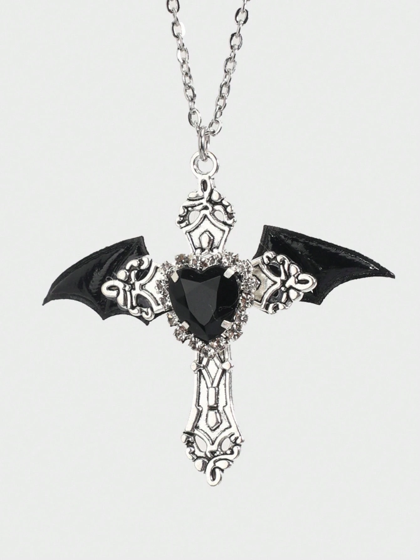 Gothic Skull, Bat, Snake, Sword Piercing Heart Pendant Necklace