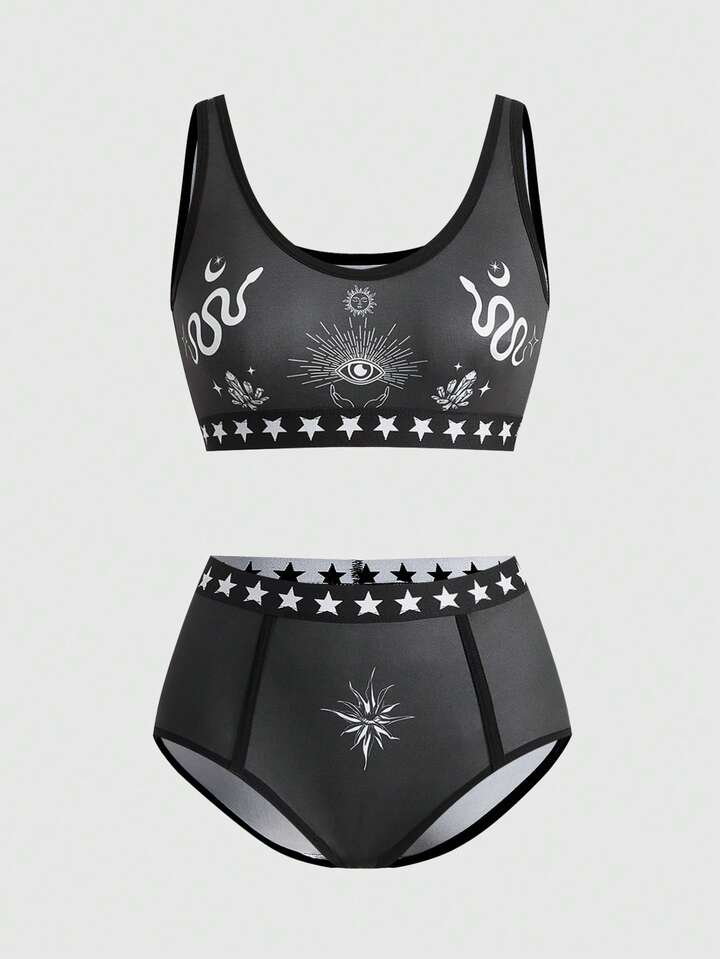 Gothic Snake Skin Eye Print Women's Camisole & Panty Set